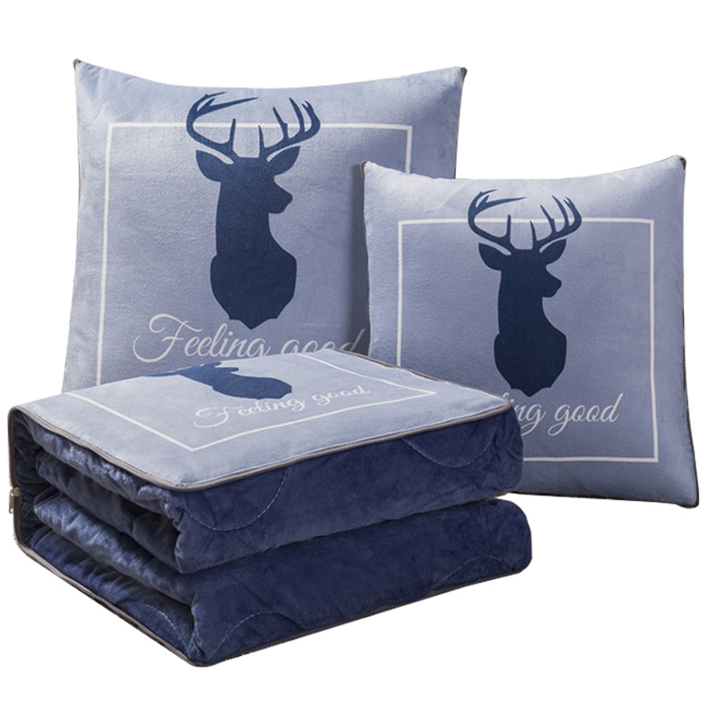 加厚多功能抱枕被子两用珊瑚绒毯子靠垫靠枕头被折叠汽车载午休被