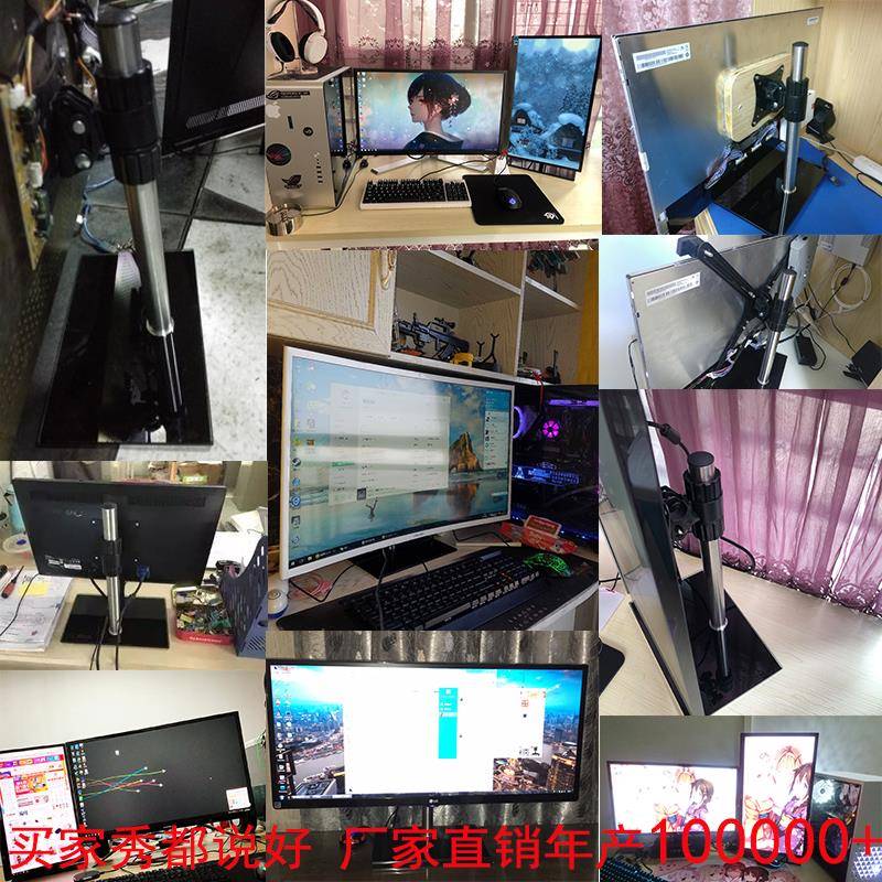电脑萤幕显示器通用底座显示屏升降台式桌面vesa竖屏支架14-27寸