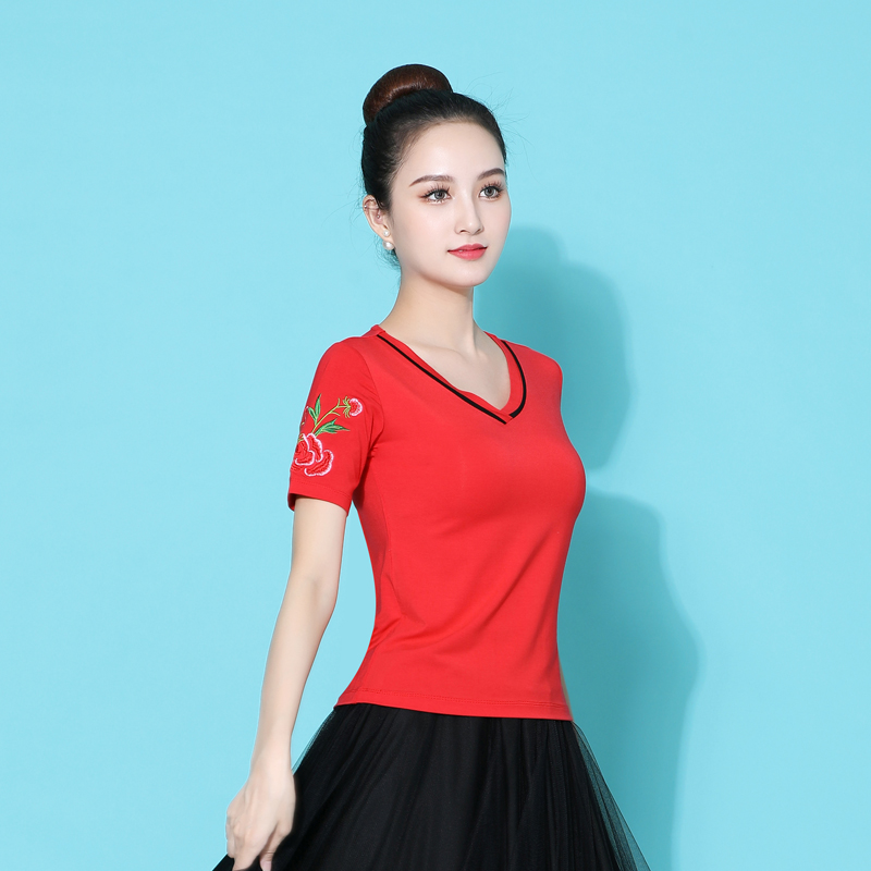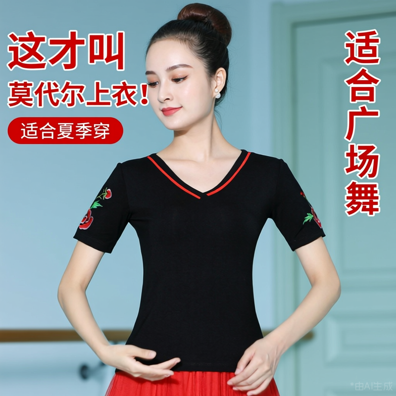 广场舞舞衣新款莫代尔上衣单件舞蹈服装练功服t恤短袖跳舞衣服夏