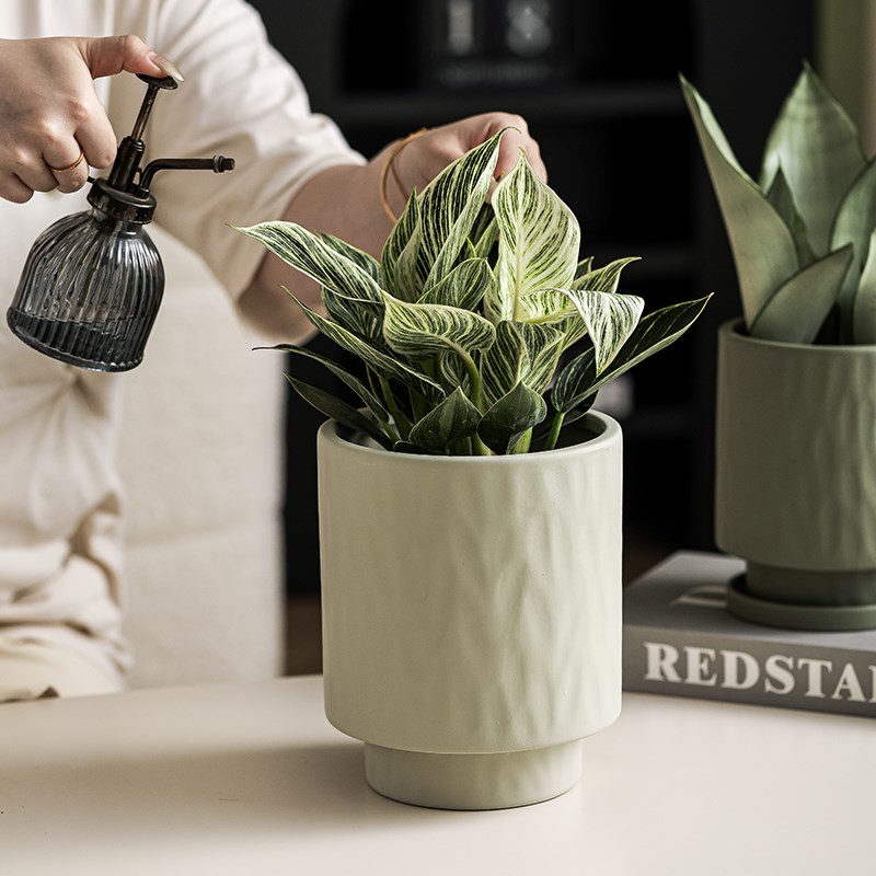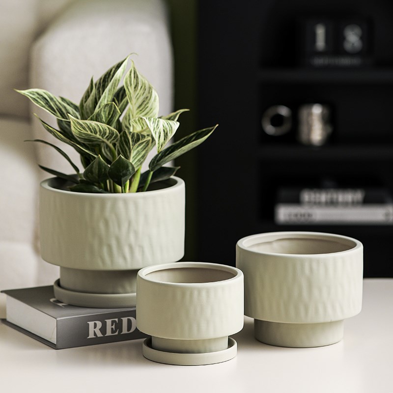 创意陶瓷花盆简约大口径兰花多肉绿植盆栽个性桌面陶土带托盘室外