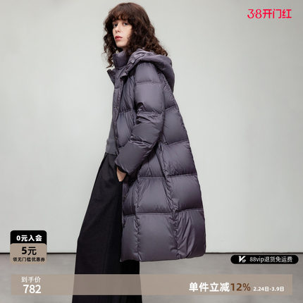 德玛纳零压感中长连帽羽绒服女25冬季新款保暖90鸭绒舒适简约外套