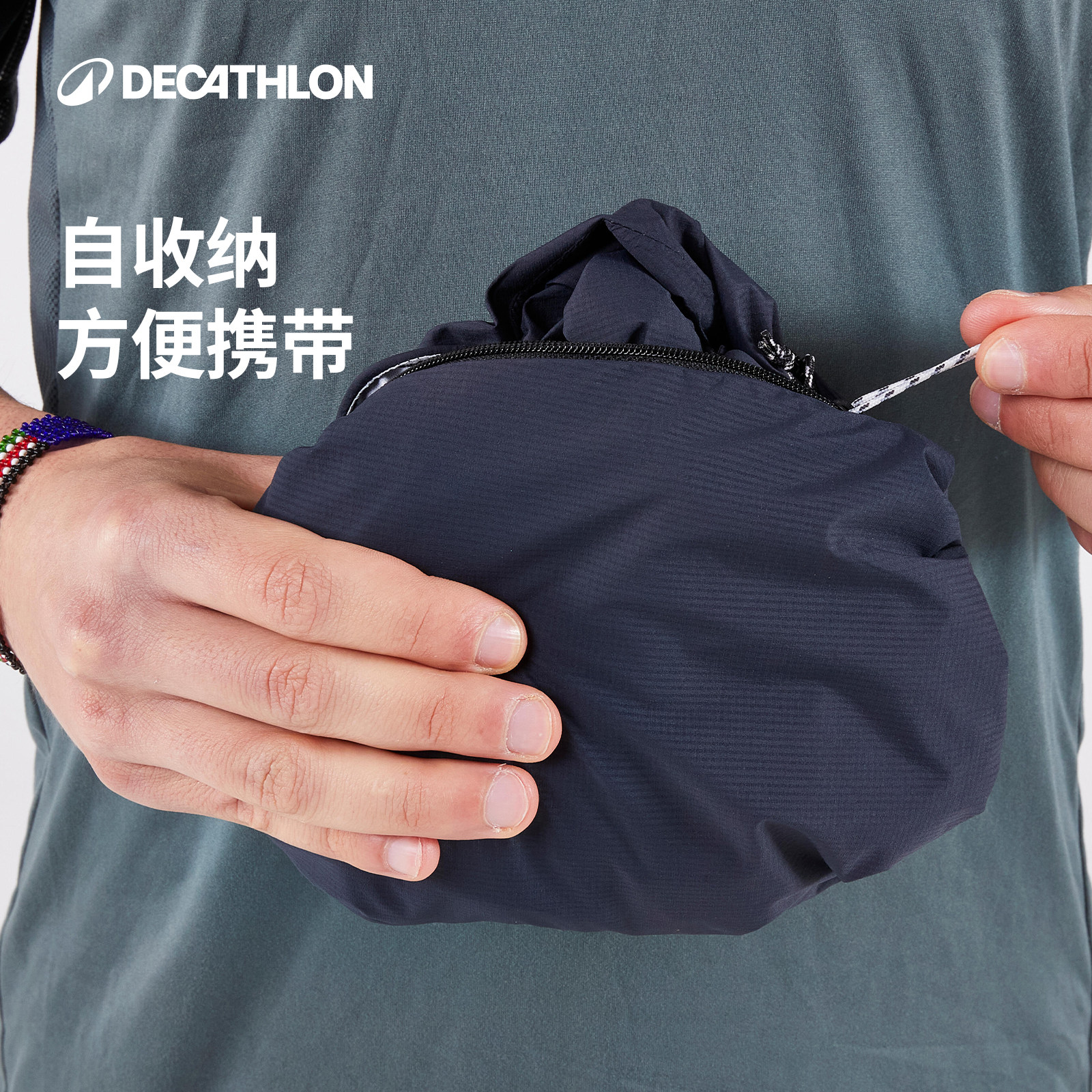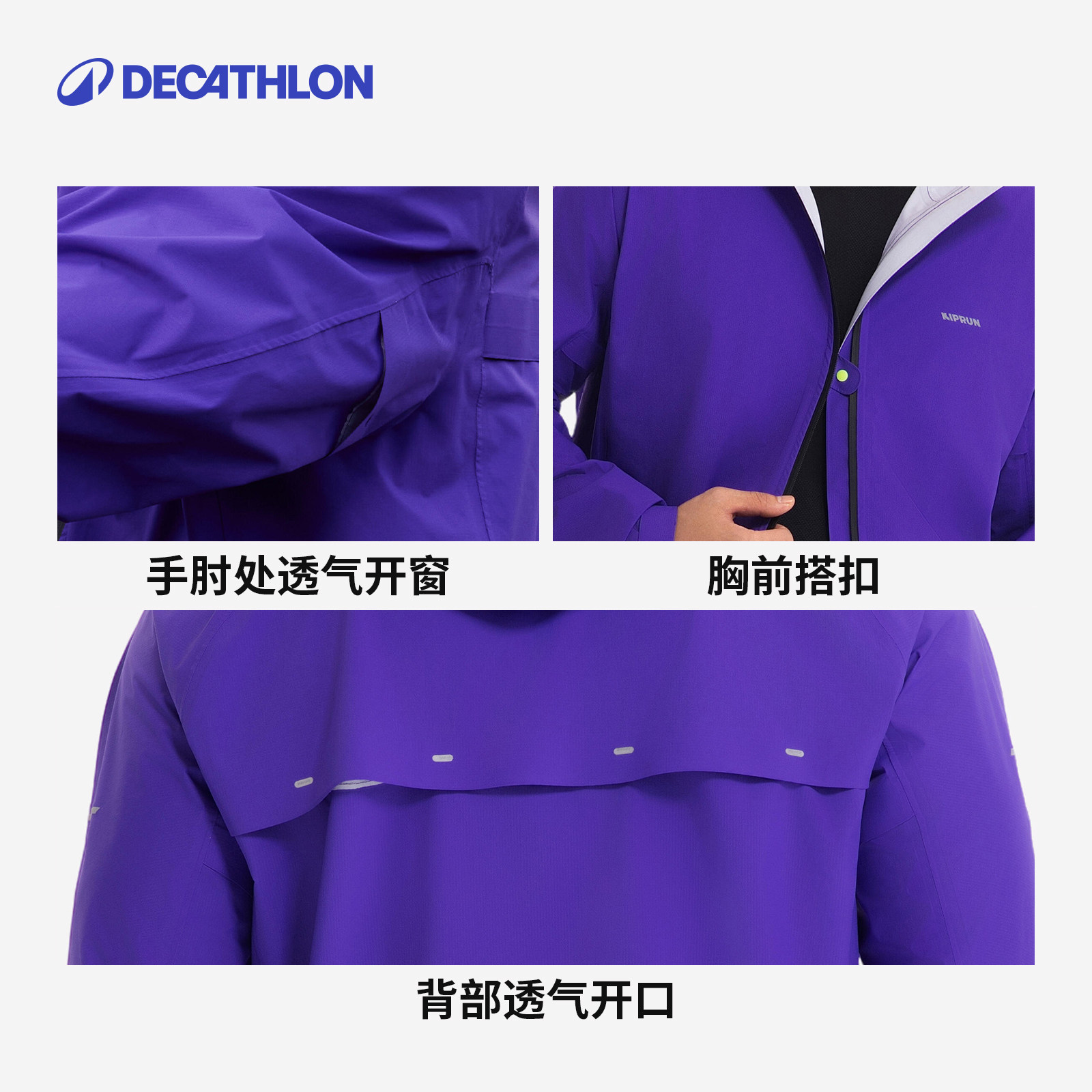 迪卡侬越野跑冲锋衣跑步风衣男防水夹克防风防水男士户外外套SAX1