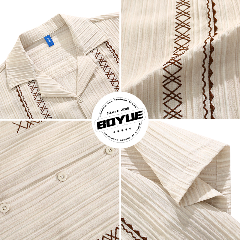 BOYUE帛跃民族风刺绣短袖衬衫男