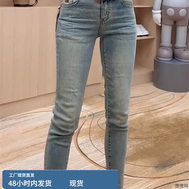 2025秋季新款大码女装覆古高腰小脚牛仔裤女弹力紧身铅笔九分裤子