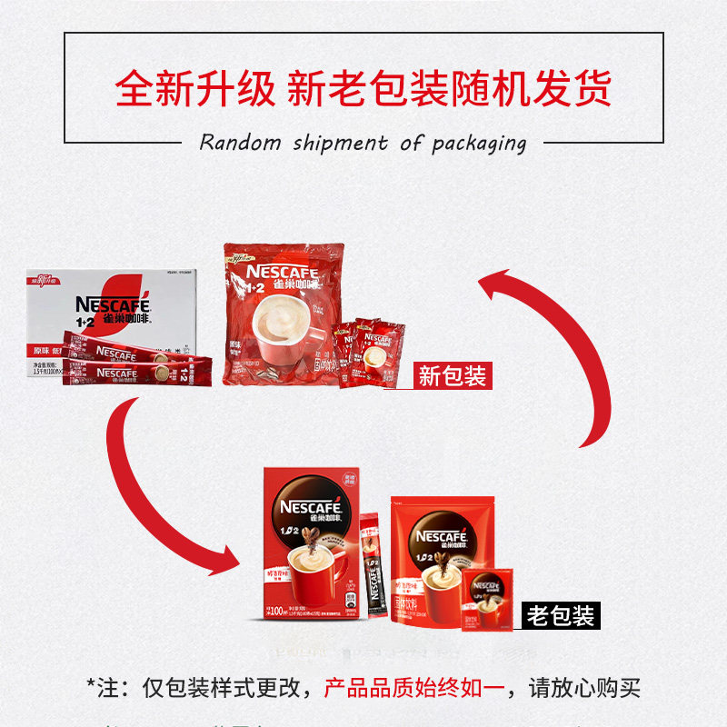 雀巢咖啡100条装原味三合一速溶咖啡粉1+2学生提神官方旗舰店旗舰