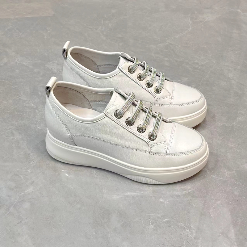 撤柜 时尚休闲小白鞋真皮厚底一脚蹬深口单鞋