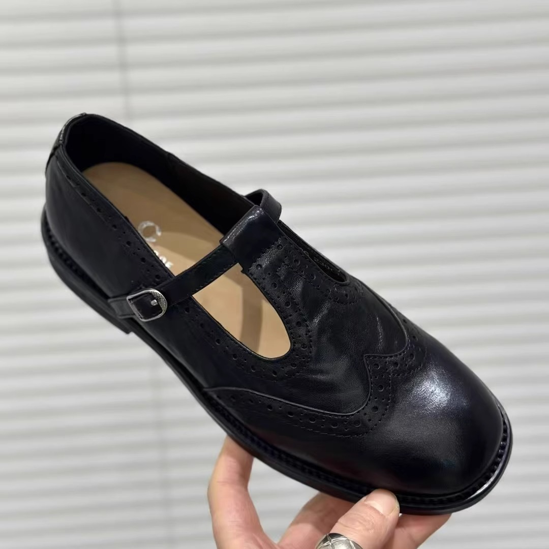 头层牛皮布洛克雕花小皮鞋女2025春新款复古T字英伦风丁字扣单鞋