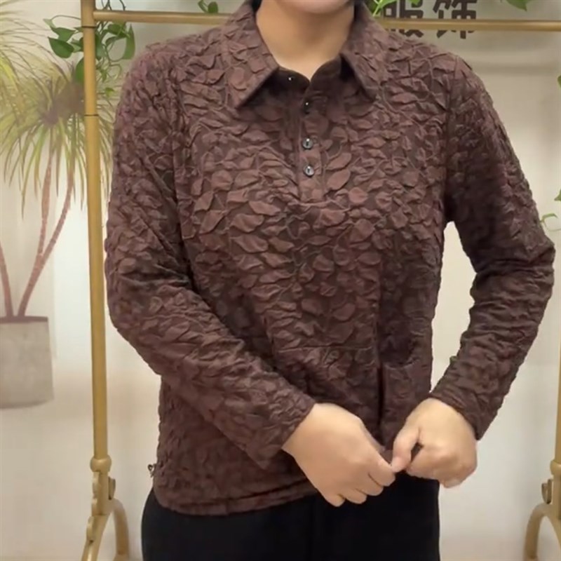 妈妈装秋冬季新款打底衫中老年女装洋气翻领长袖上衣保暖小衫