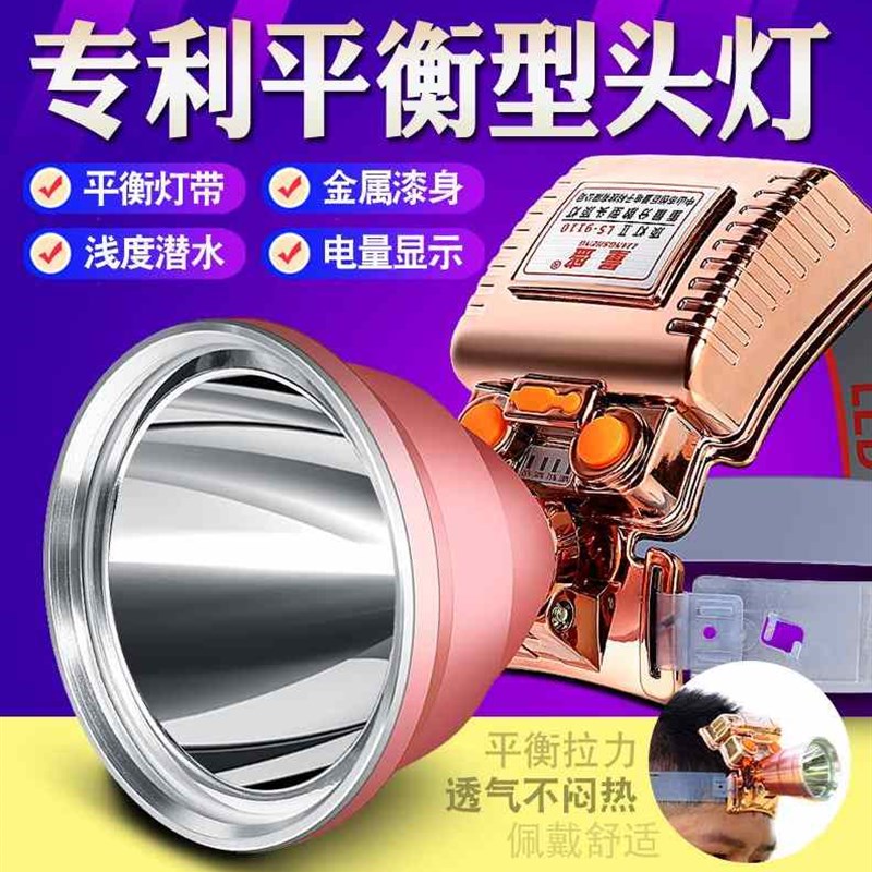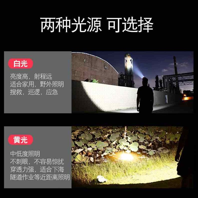 量盛LED户外i防水黄光头灯强光充电超亮疝气头戴式矿灯锂手电筒