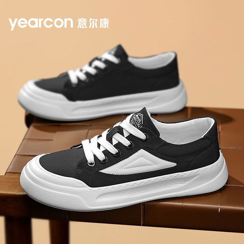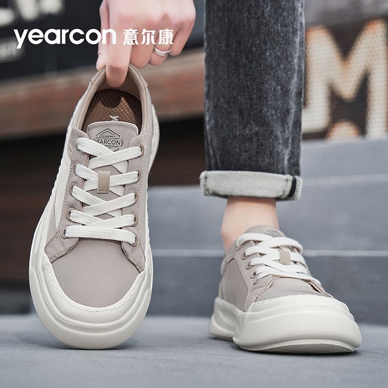 意尔康帆布鞋男鞋夏季透气薄款板鞋2025新款厚底百搭轻便休闲布鞋