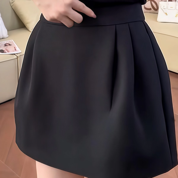 大码2025秋冬高腰黑色褶皱百搭花苞短裙女胖mm遮胯显瘦a字半身裙