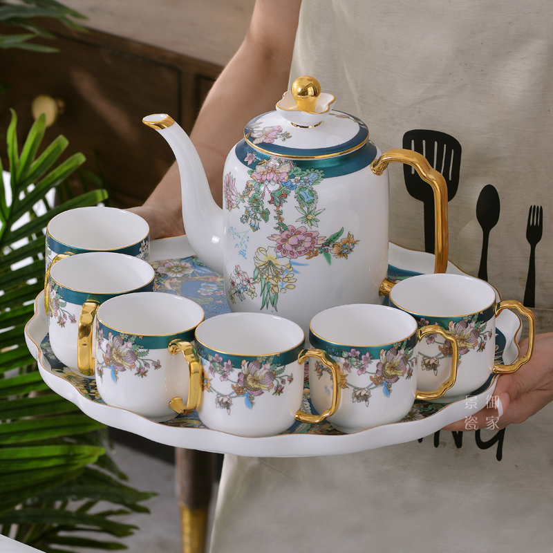 锦盒装 欧式高白整套景德镇家用高端骨瓷茶具套装轻奢高档旋转盘