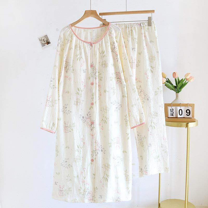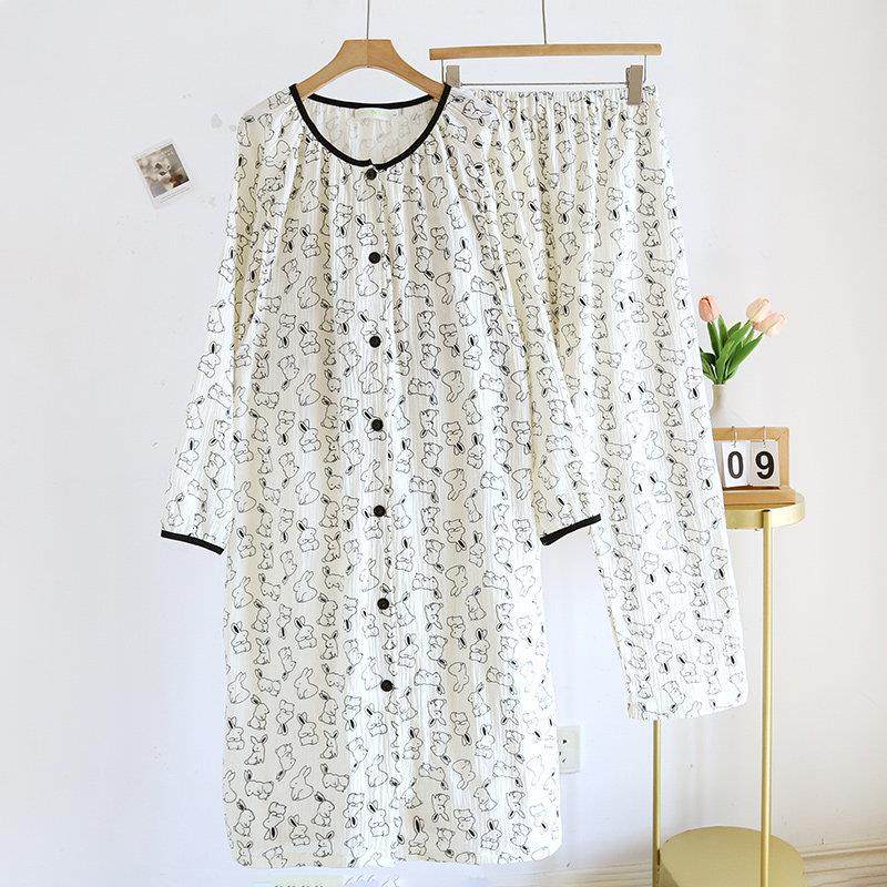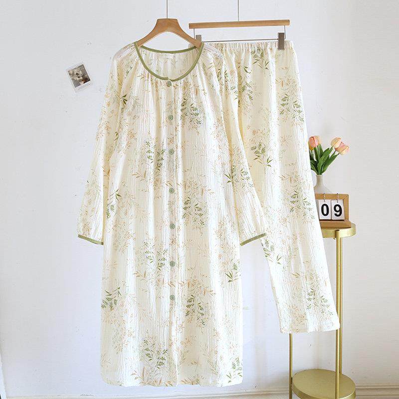 医院待产裙孕妇纯棉带胸垫两件套纱布月子服夏季薄款产后哺乳睡衣
