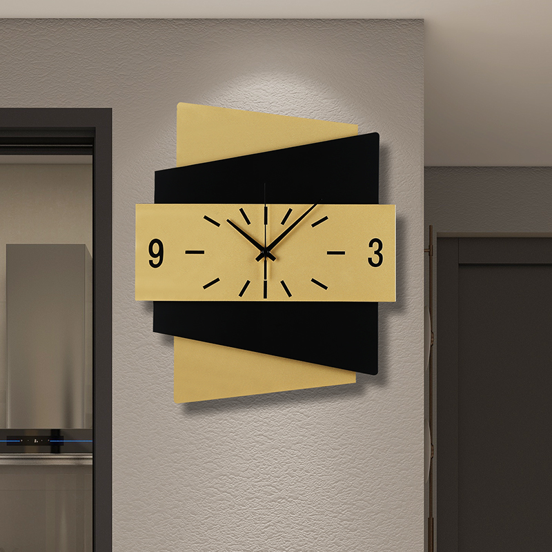 客厅挂钟高级感格栅墙现代简约轻奢装饰家用时尚挂表餐厅立体钟表