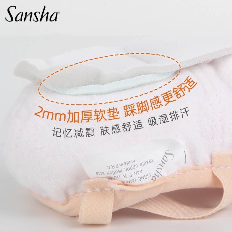 正品Sansha三沙舞蹈鞋软鞋练功鞋芭蕾舞鞋帆布面成人免系带猫爪鞋