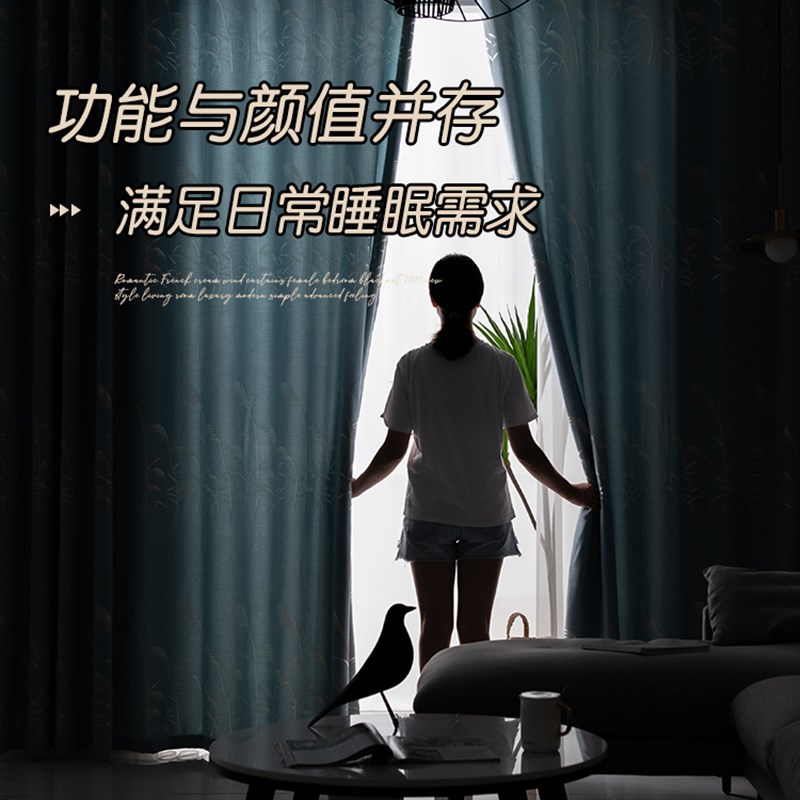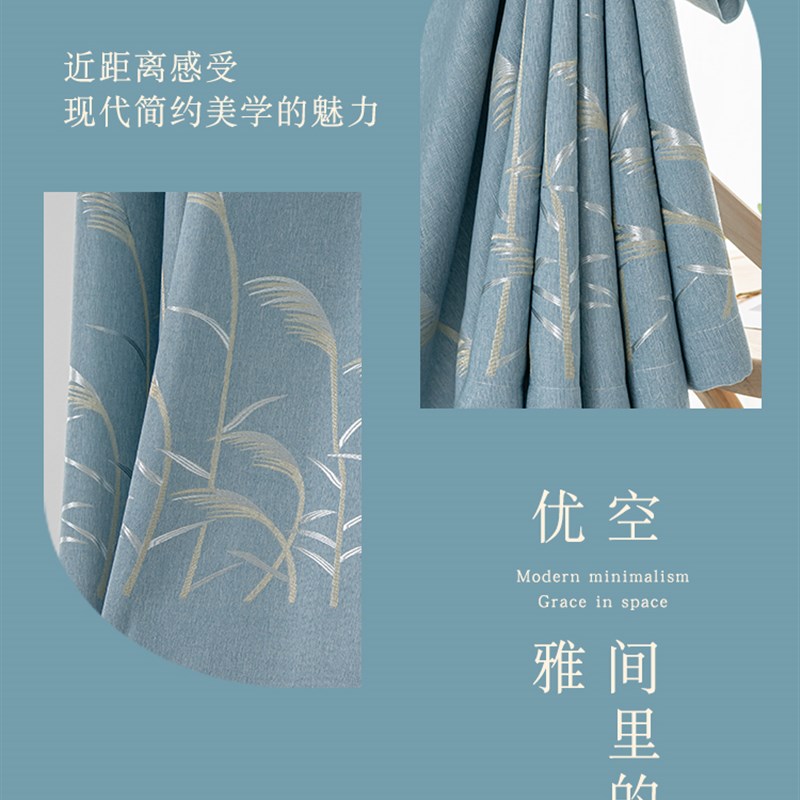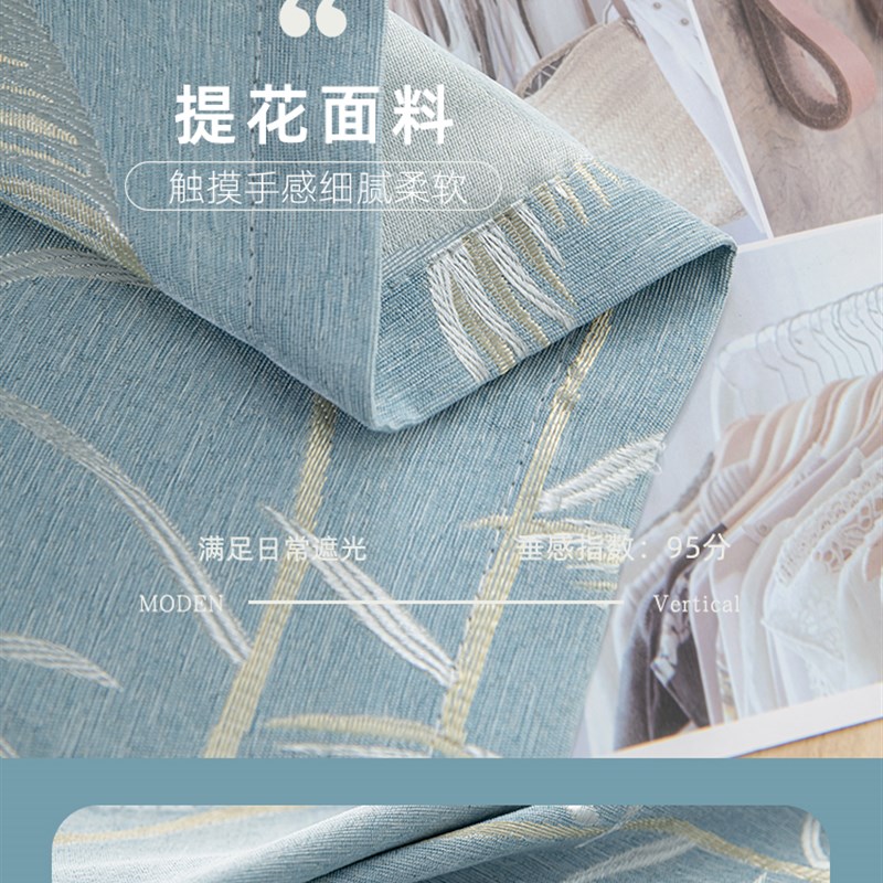 卧室窗帘遮光2023新款客厅奶油风蓝色轻奢现代简约成品布挂钩2024