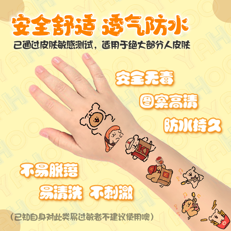线条小狗纹身贴卡通可爱贴纸儿童贴画安全无毒表情包脸贴防水持久