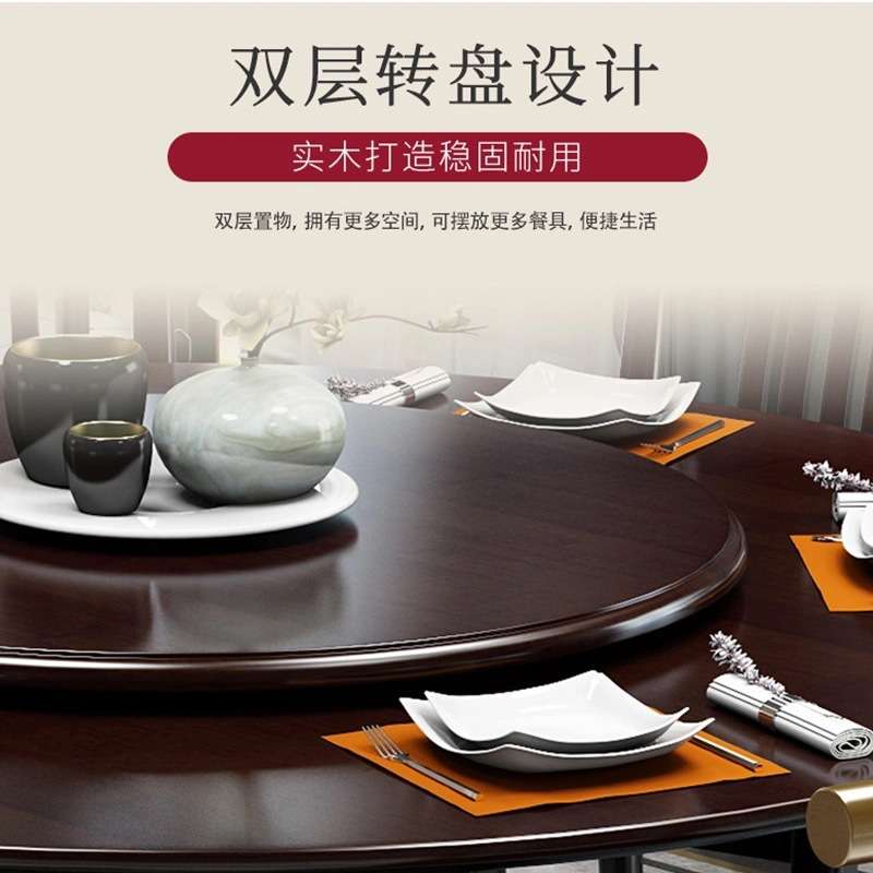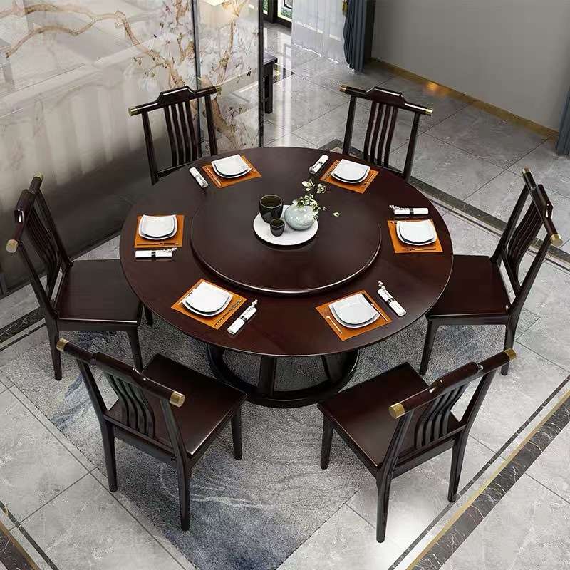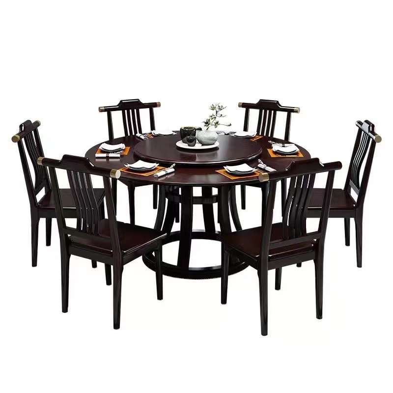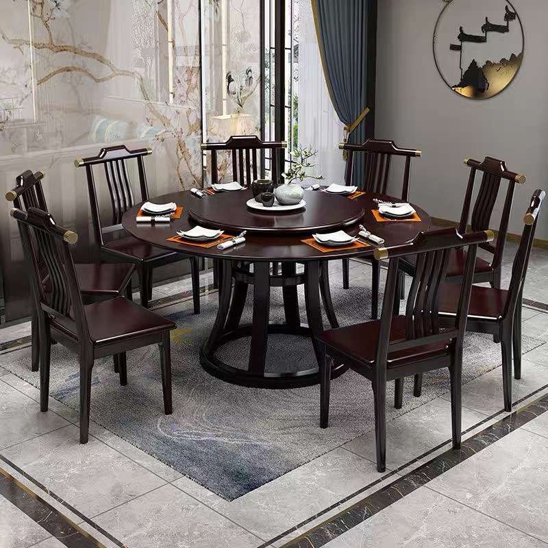 新中式实木圆形餐桌大圆桌家用饭桌10人实木餐桌椅组合厂家