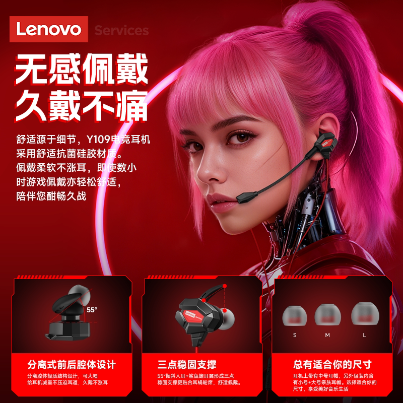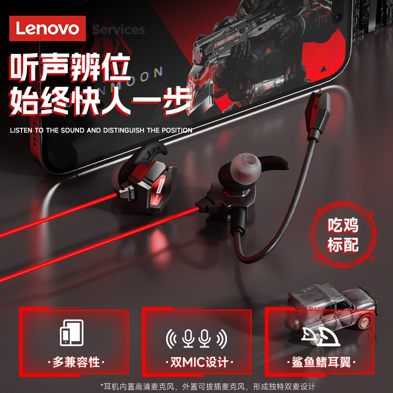 联想游戏有线耳机2026新款电竞吃鸡专用typec接口入耳式带麦降噪
