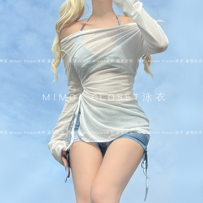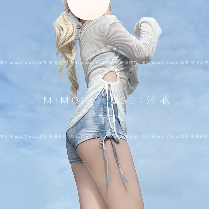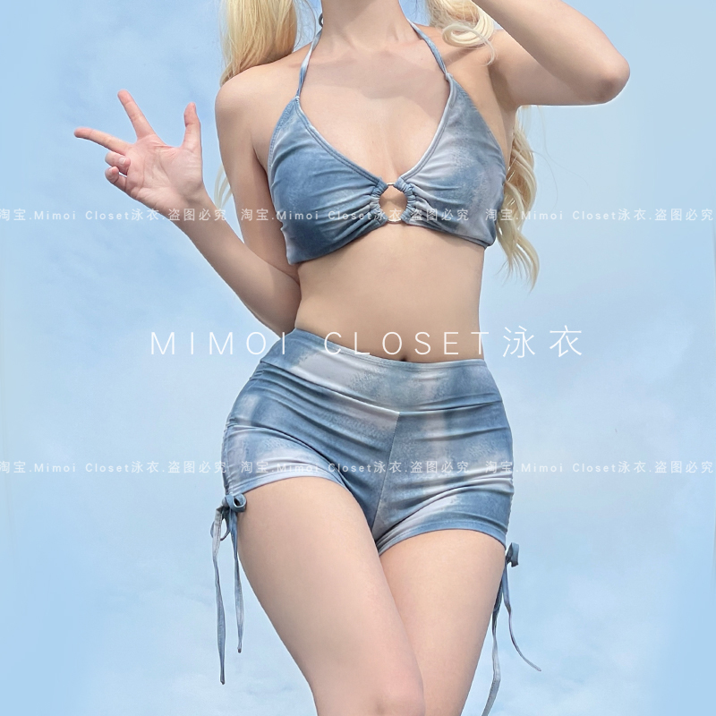 Mimoi Closet新款扎染长袖分体性感比基尼三件套泡温泉游泳衣女款