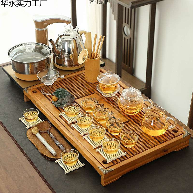 整套自动茶具套装分体茶盘电茶炉家用简约办公室玻璃茶壶紫砂杯厂