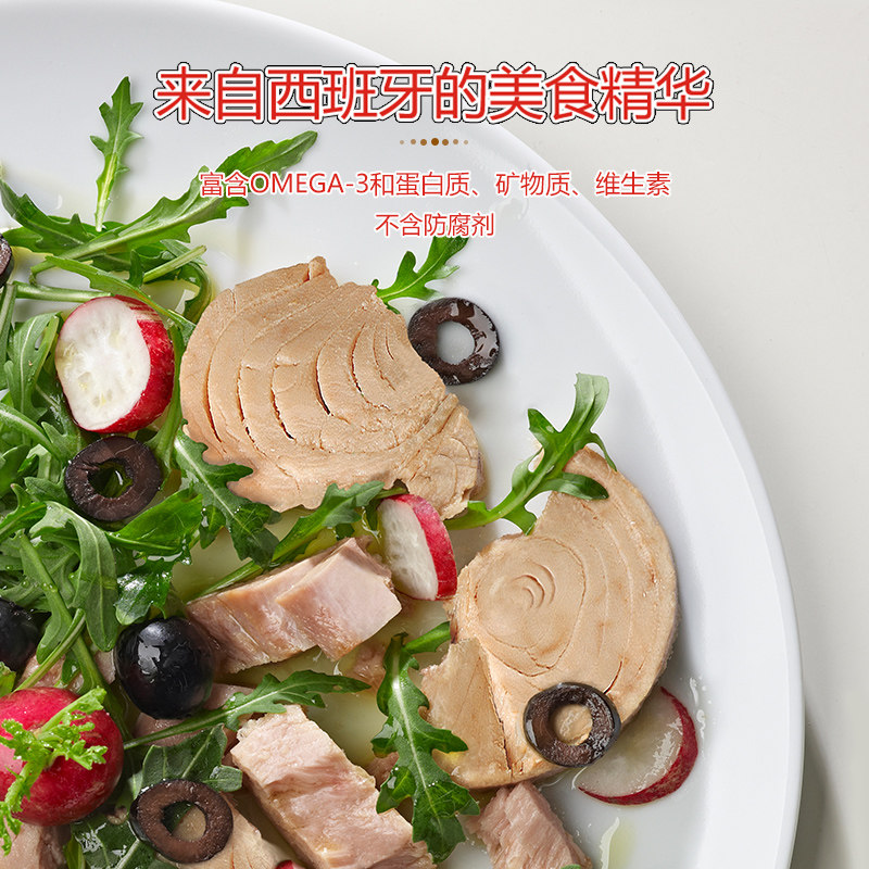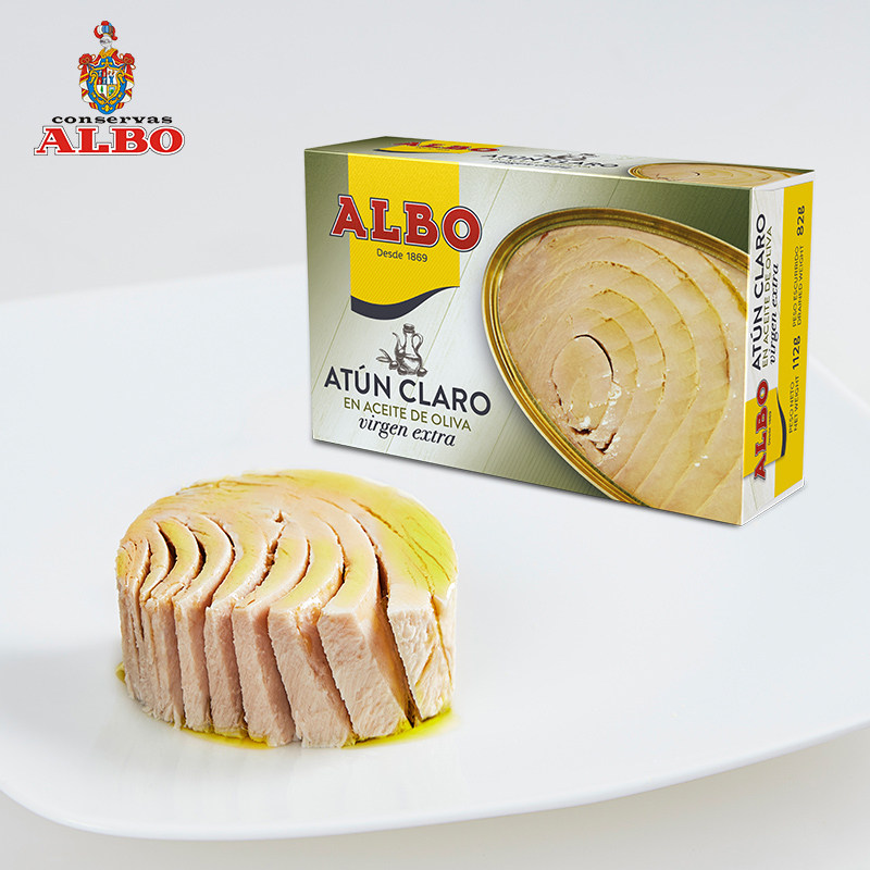 Albo西班牙进口初榨橄榄油浸黄鳍金枪鱼320原味112g吞拿即食罐头