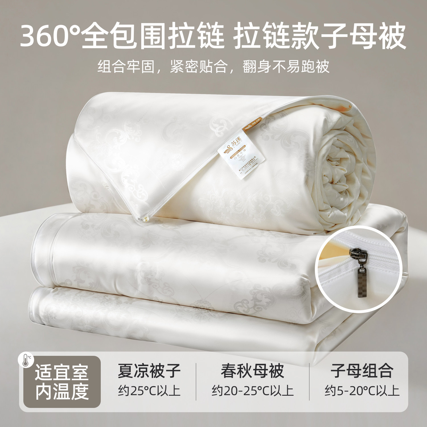 苏迷100%桑蚕丝被子黄金丝春秋被加厚冬被二合一子母被四季被芯