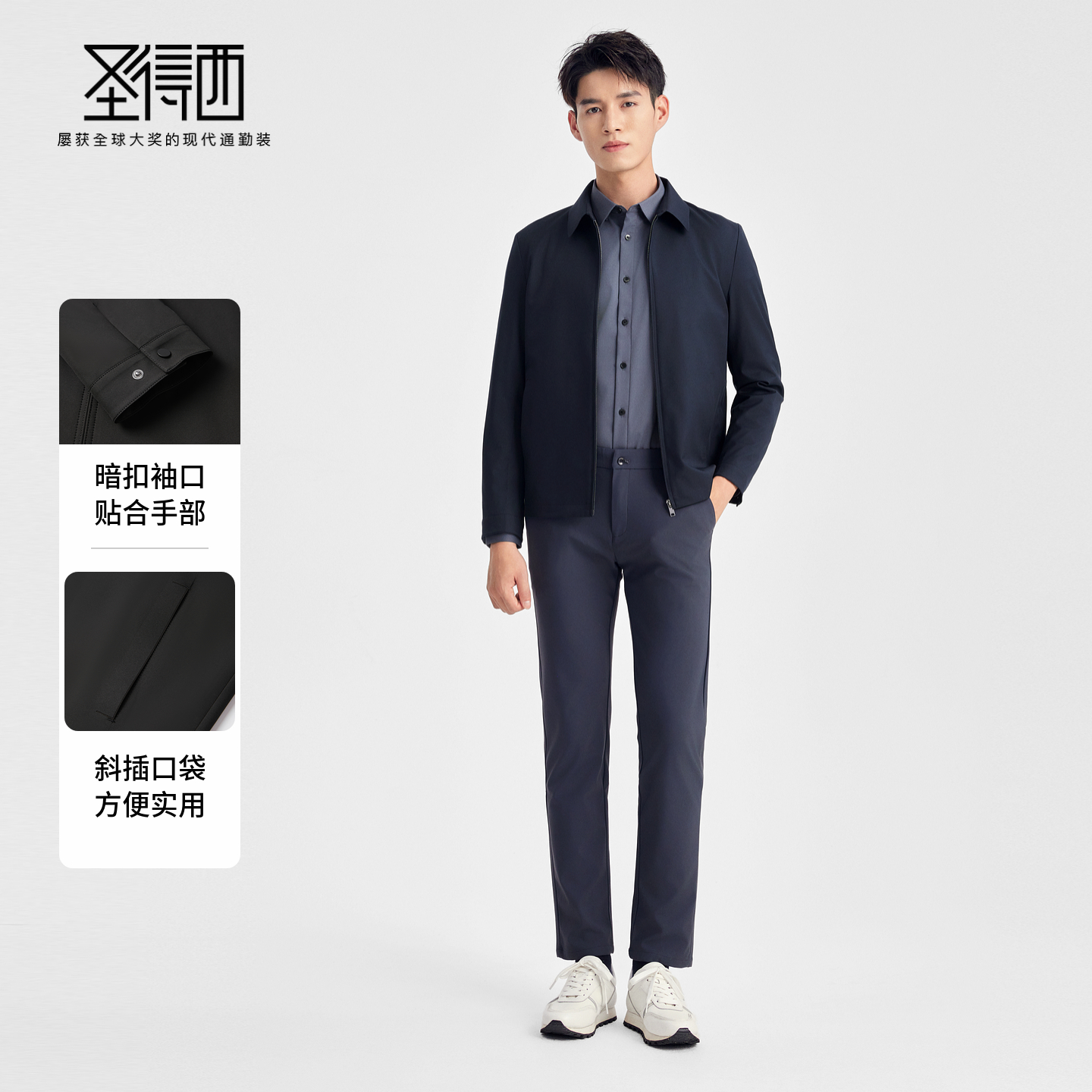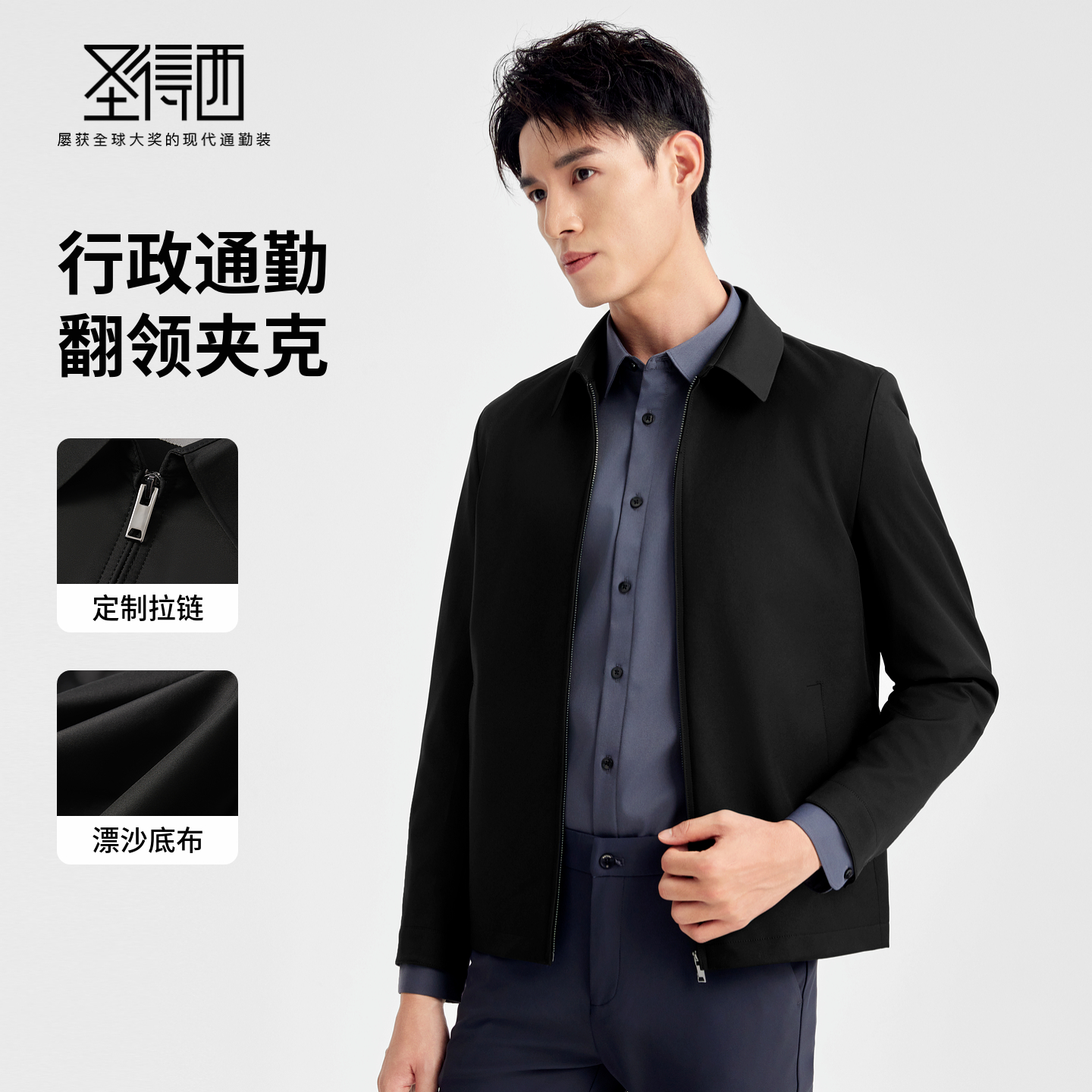圣得西男士行政通勤翻领夹克2025秋季款商务休闲干部风简约外套