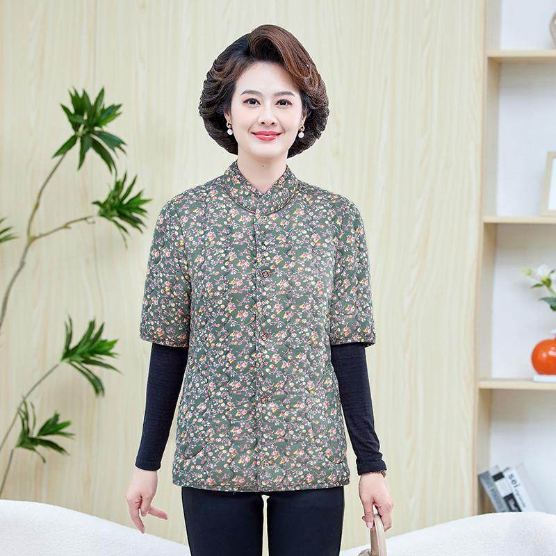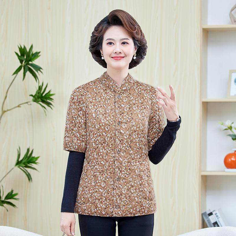 妈妈装半袖护肩贴身马甲背心中老年驼绒棉马夹女加绒兔毛棉衣马夹
