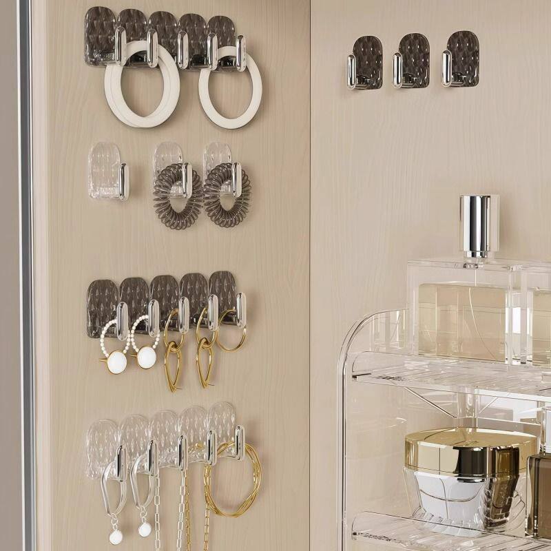 迷你无痕连排挂钩卫生间镜柜门后首饰粘贴壁挂小钩免打孔收纳承重