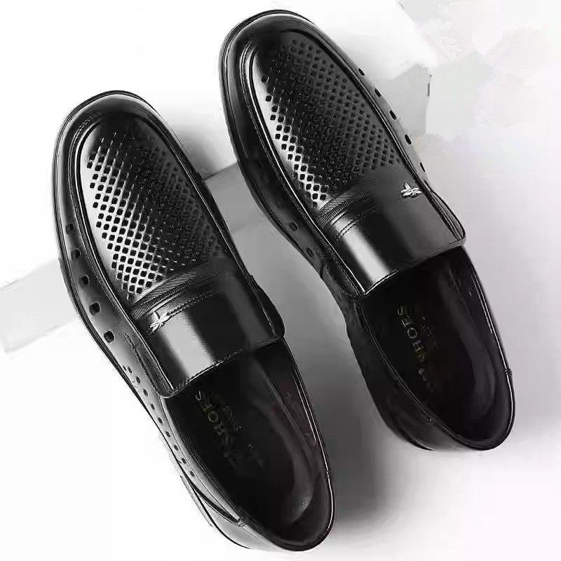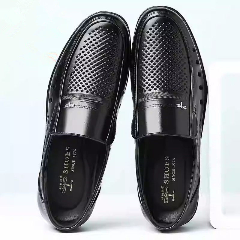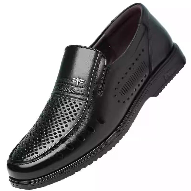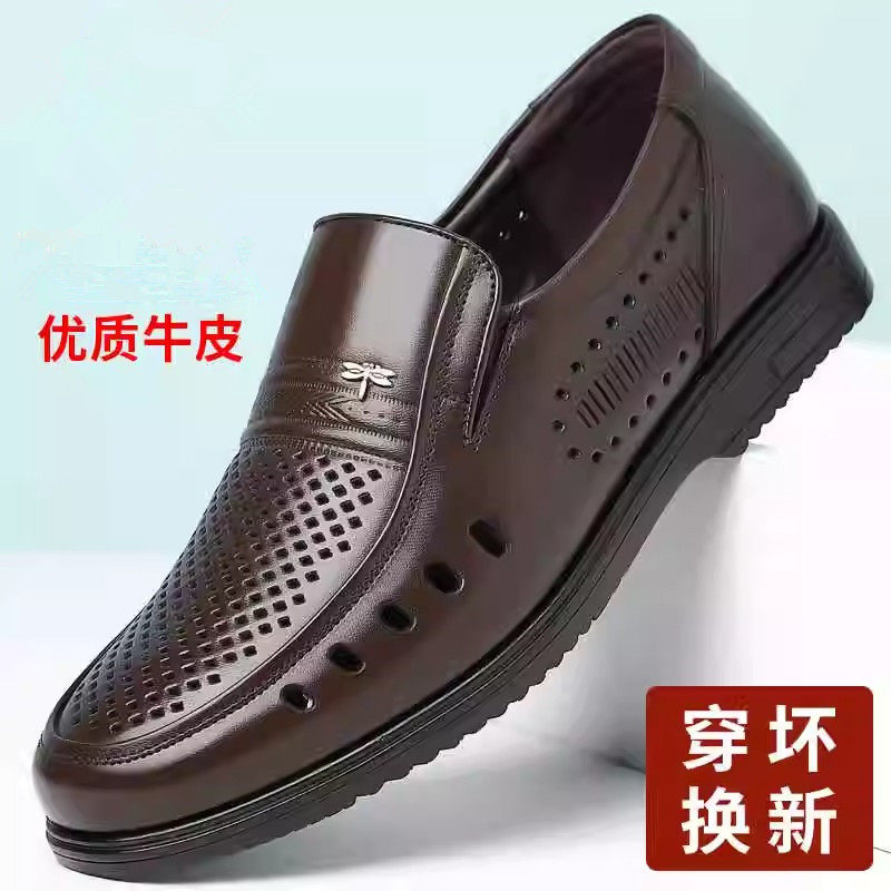 红蜻蜓男士真皮透气镂空休闲皮鞋夏季软底中老年人爸爸鞋舒适防滑