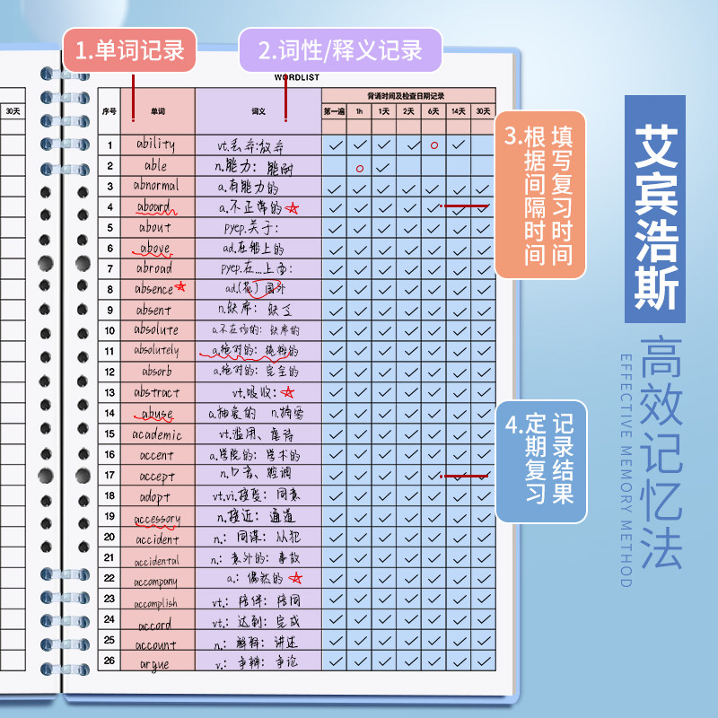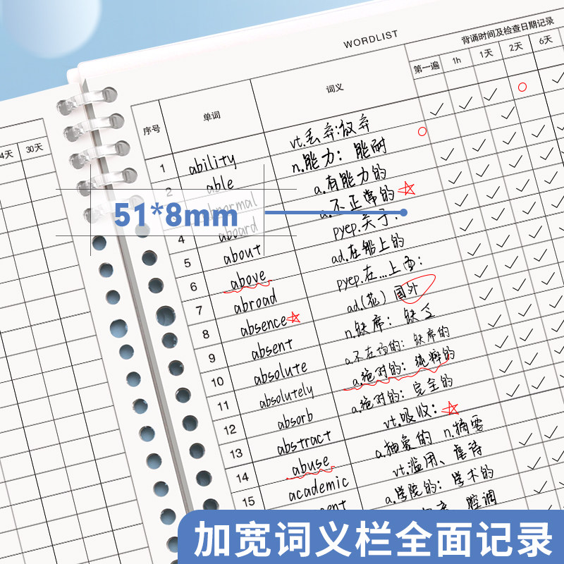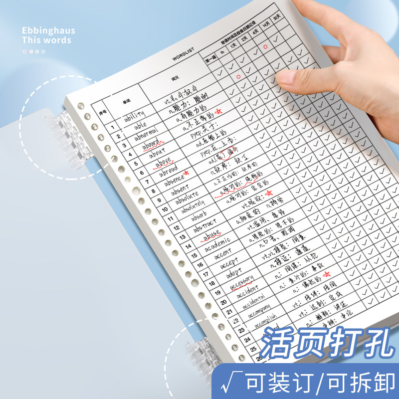 B5英语单词本艾宾浩斯记忆曲线法大学生四六级初高中考研专用默写便携式活页可拆卸高颜值笔记本生词积累本