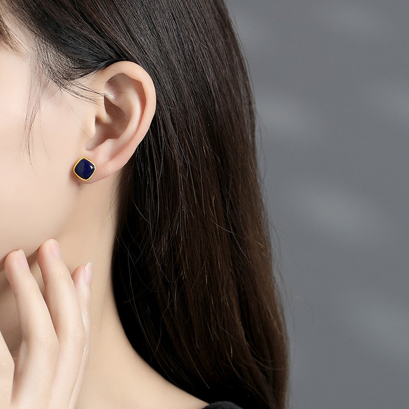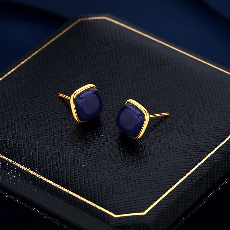 【紫罗兰正版】蓝感S925纯银耳钉女高级感青金石耳饰潮生日礼物
