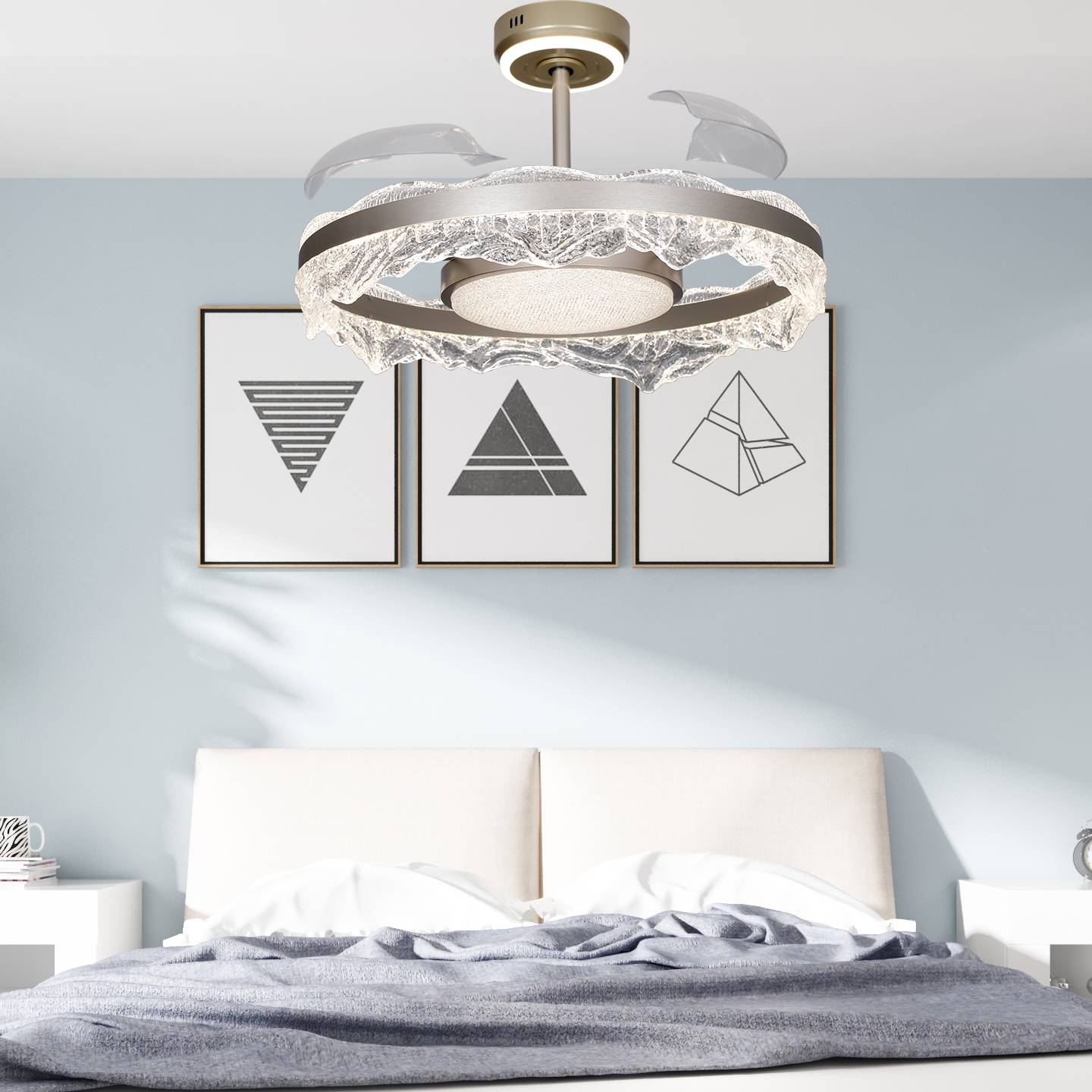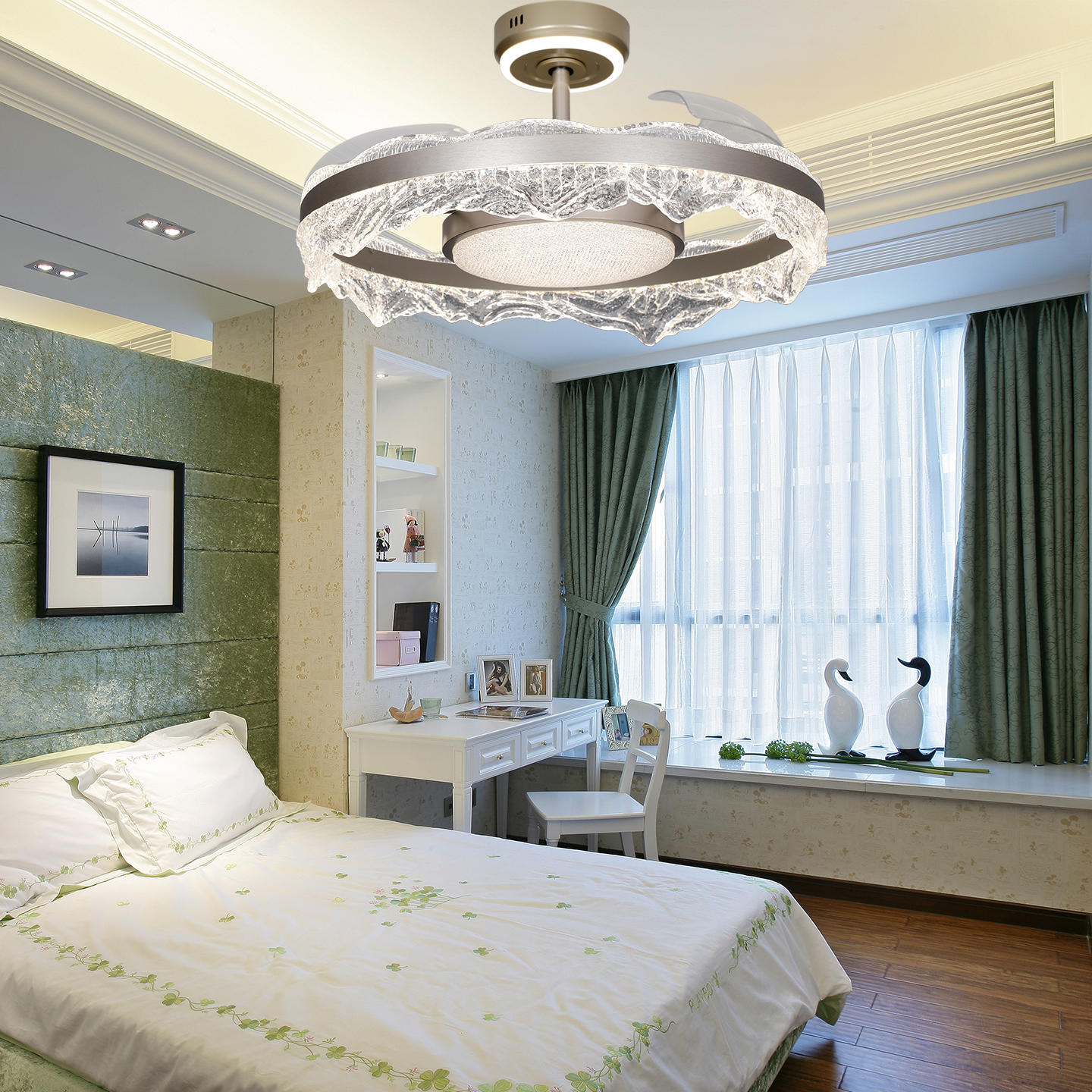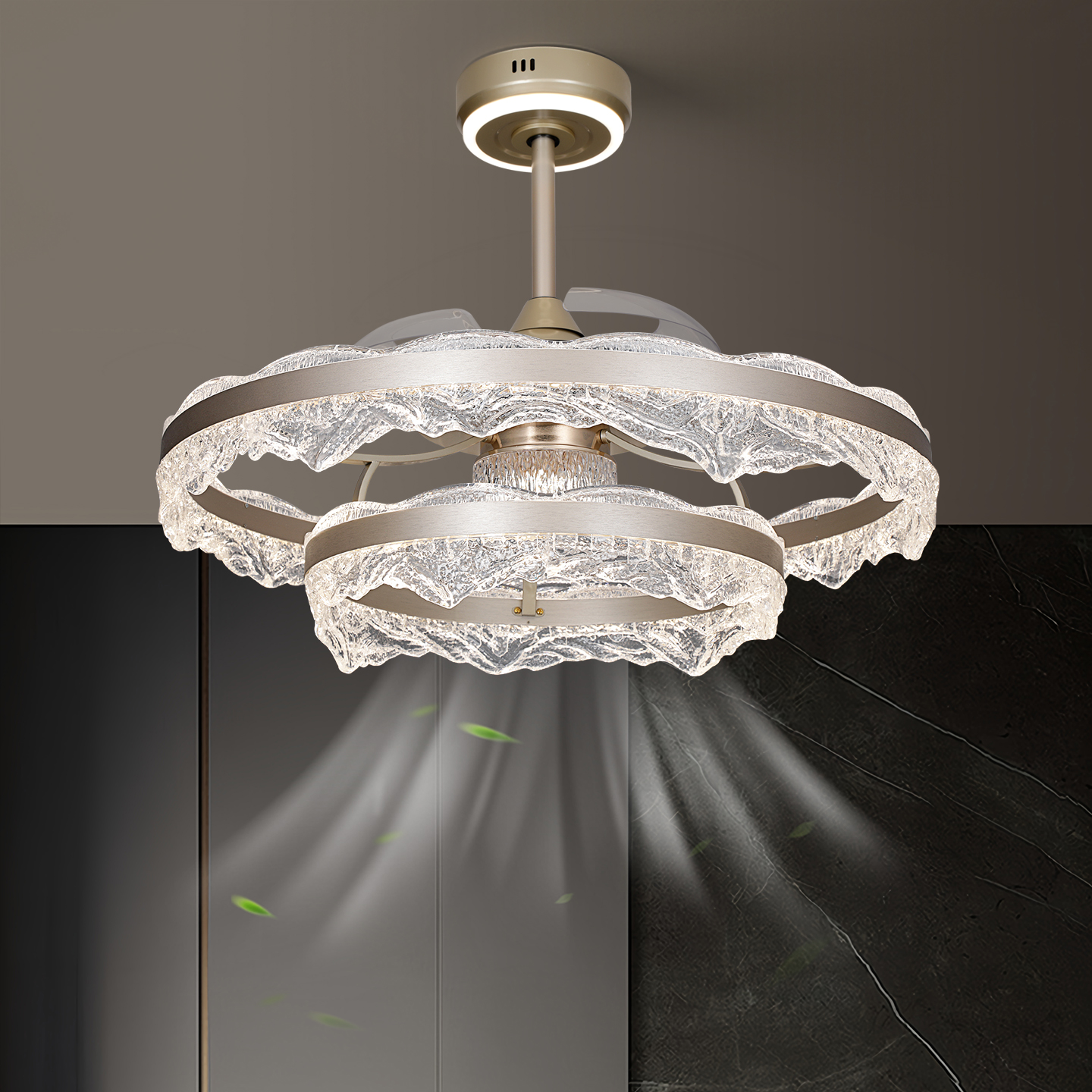 新款餐厅隐形风扇吊灯三色可变光智能语音全铜变频静音电机