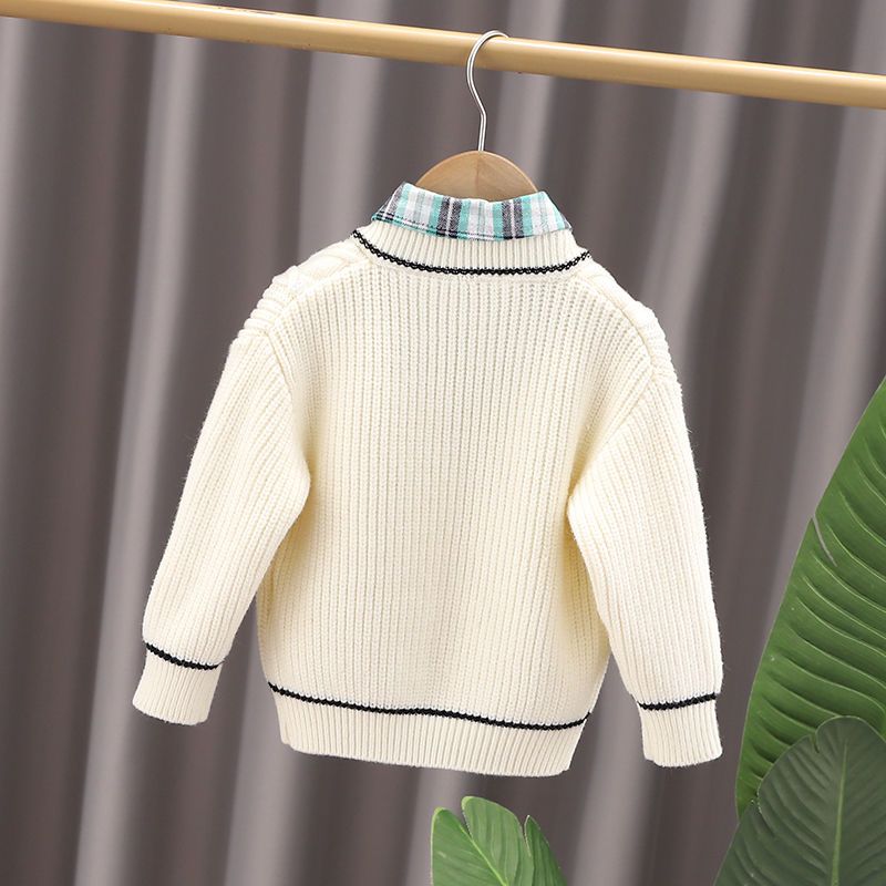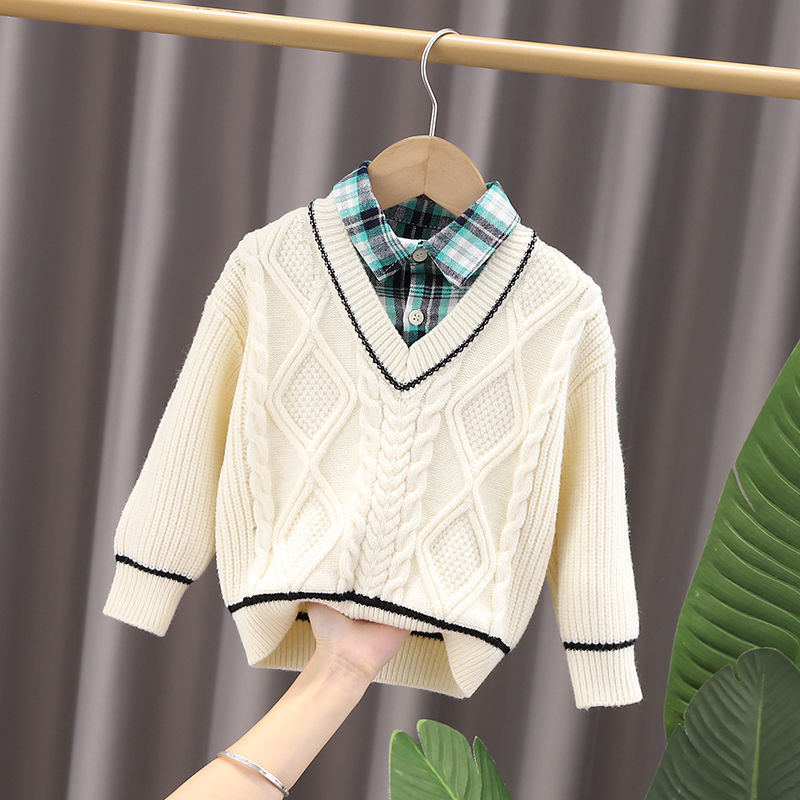 儿童毛衣男童衬衣领假两件v领时尚毛衣休闲百搭针织衫宝宝线衣厚