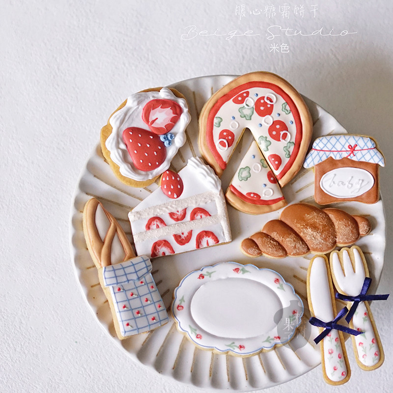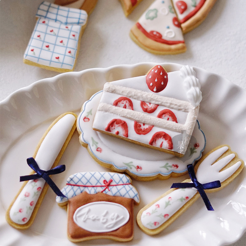 田园风野餐美食糖霜饼干模具 披萨草莓蛋糕可颂法式曲奇压模diy