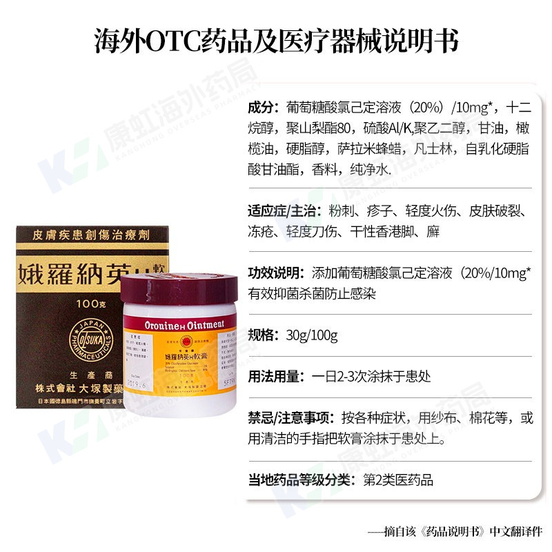 日本进口娥罗纳英雪花膏大冢制药 h软膏皮肤祛痘修护冻疮药膏正品