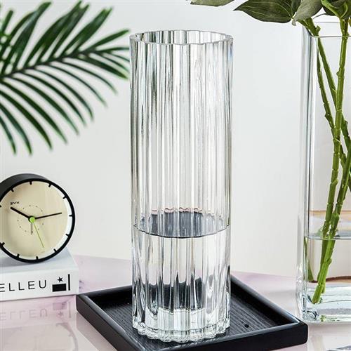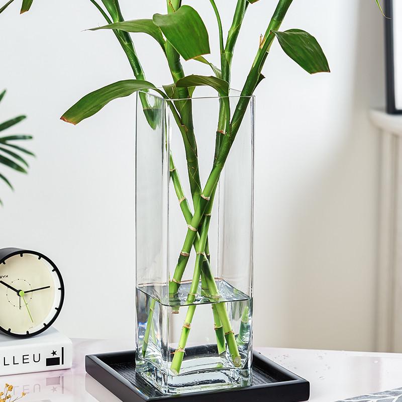 玻璃花瓶摆件客厅透明插花干花方形直筒大号装饰花器水培富贵竹瓶