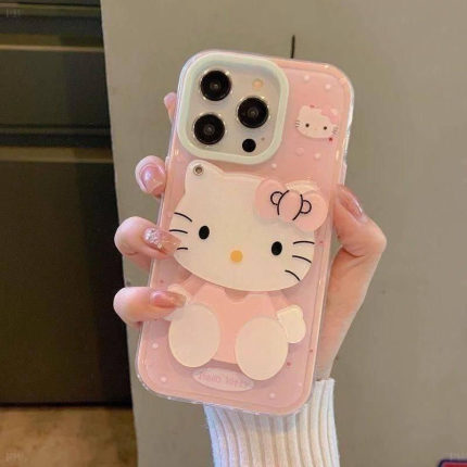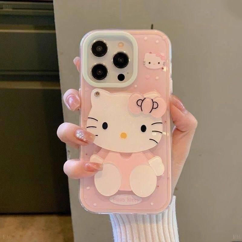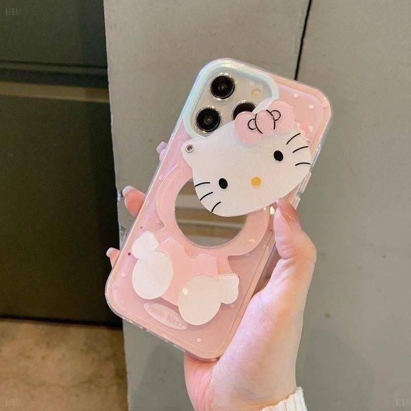 便携式KT猫镜子适用于苹果16promax手机壳15/14/13可爱OPPORENO14/13/12红米NOTE14/13/12卡通VIVO小米OPPO