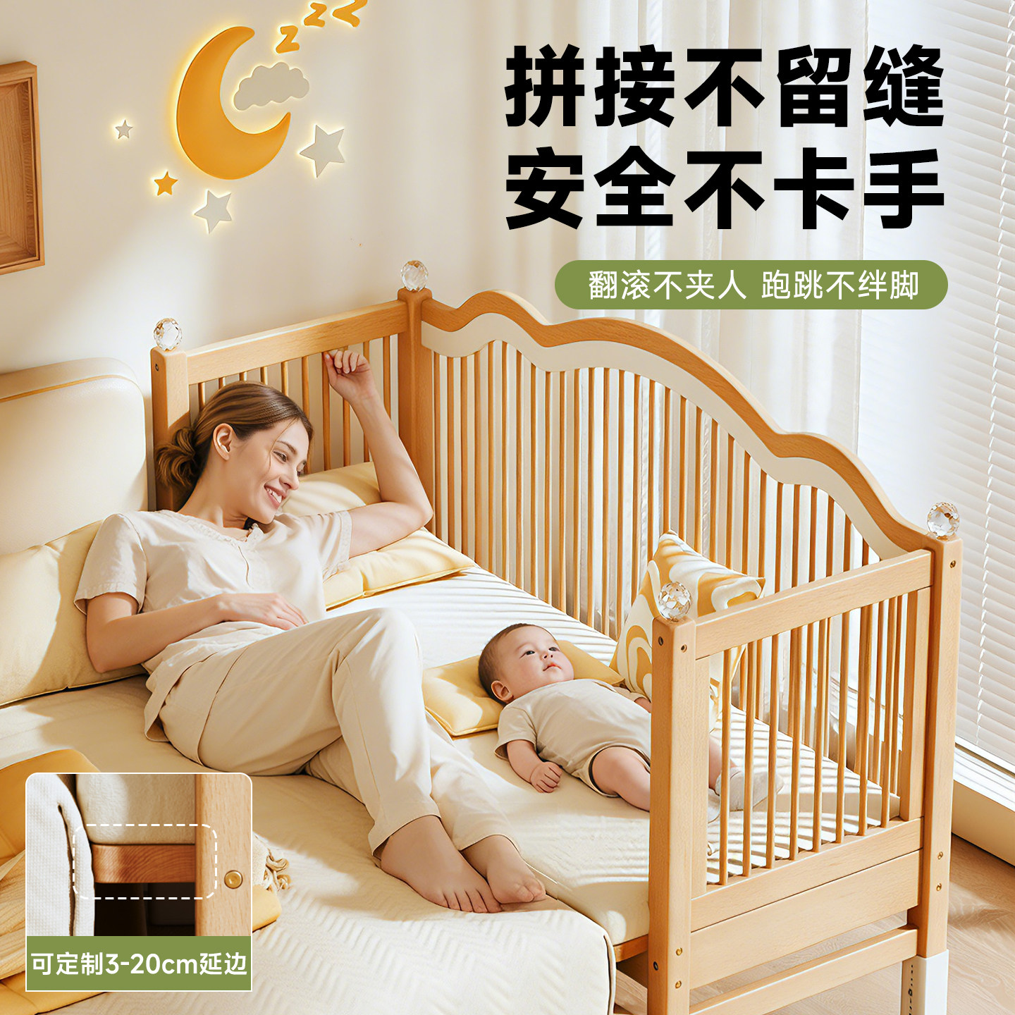贝寝榉木拼接床加宽婴儿床