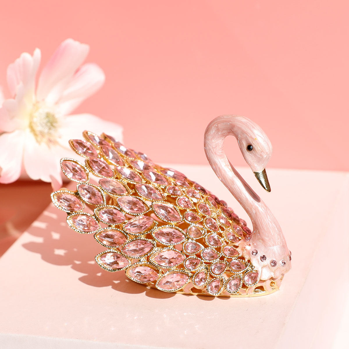珐琅工艺爱永恒合金天鹅饰品盒金属摆件小收纳盒创意情人节礼品
