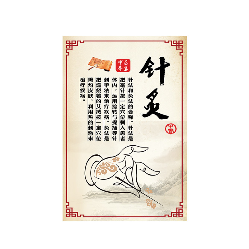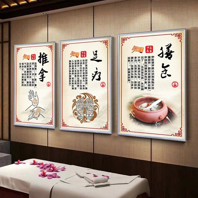 中医理疗馆养生图片墙壁装饰画针灸推拿足疗刮痧拔罐海报宣传挂图