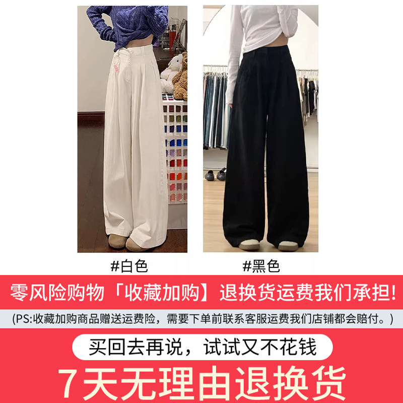 白色棉麻西装裤女春秋新款高腰显瘦垂感老钱风宽松亚麻休闲阔腿裤