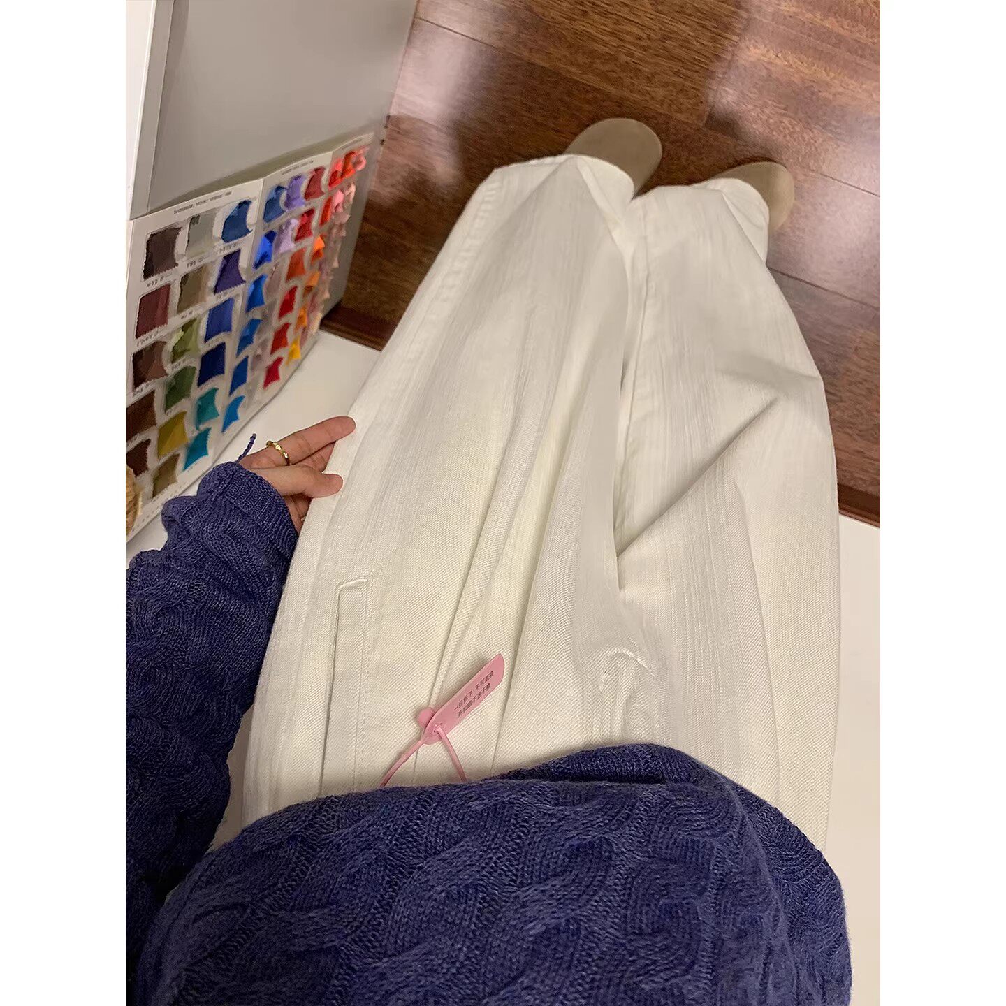 白色高腰显瘦棉麻阔腿西装裤