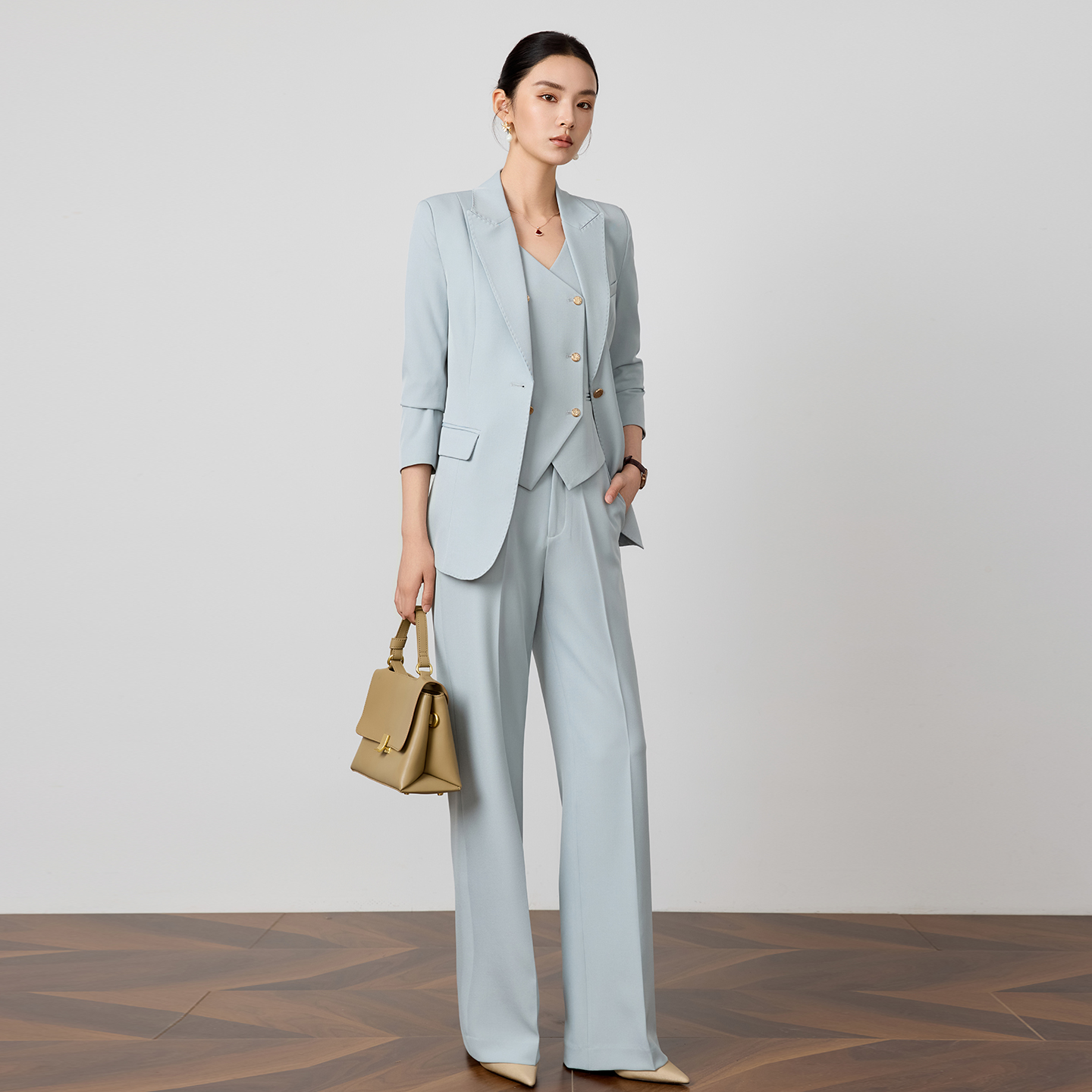 春秋冬新冰雾蓝一粒扣中长气质优雅职业西装外套高端阔腿裤套装女