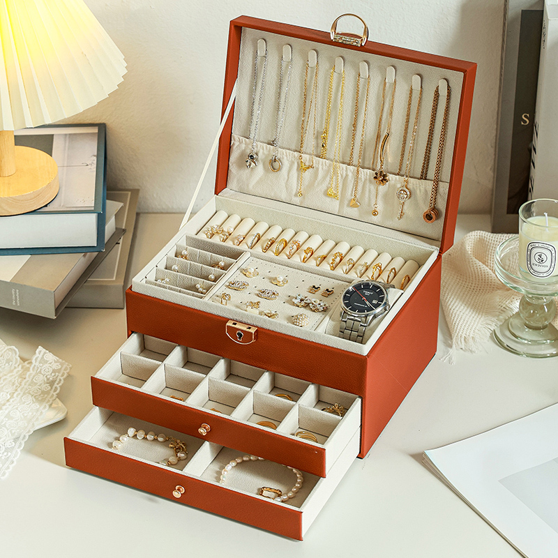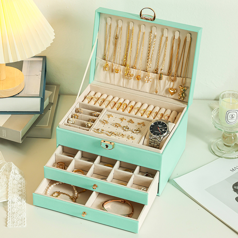 首饰收纳盒多层大容量防氧化高档耳环项链戒指手镯饰品黄金整理箱