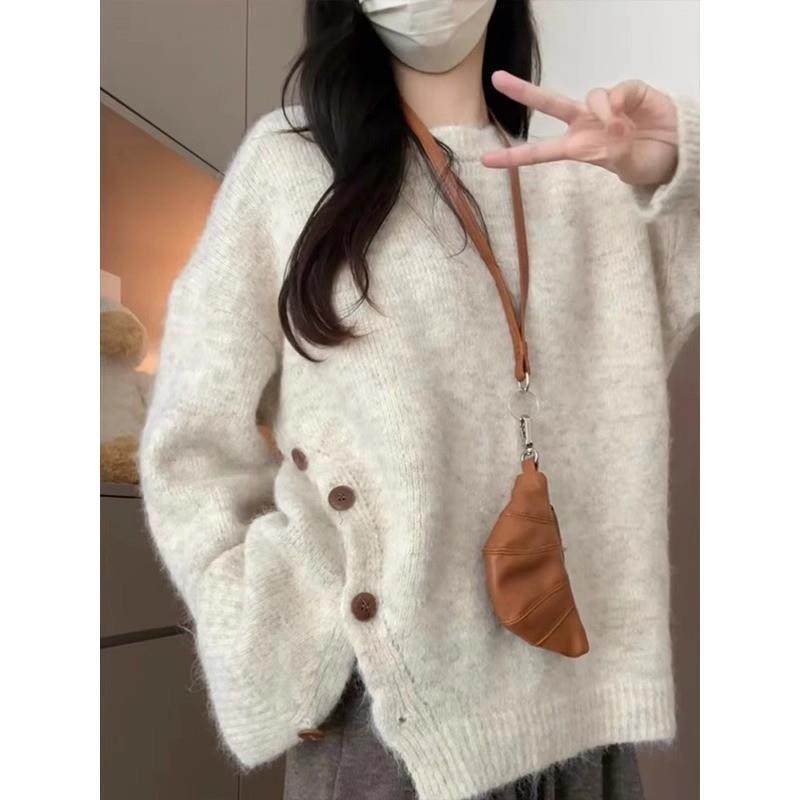 慵懒风白色毛衣女秋冬季2025新款小个子软糯高级感宽松套头厚上衣