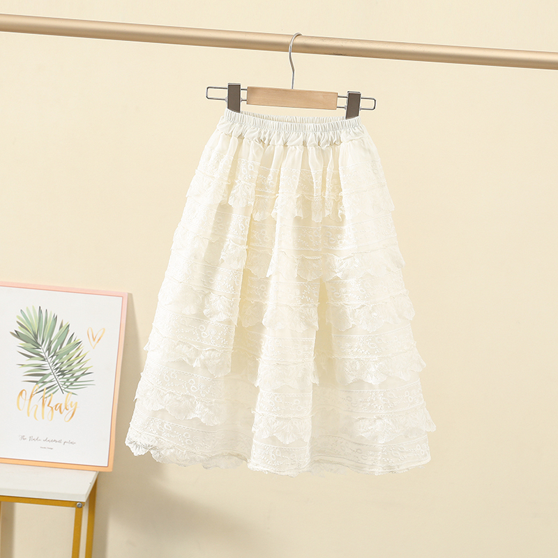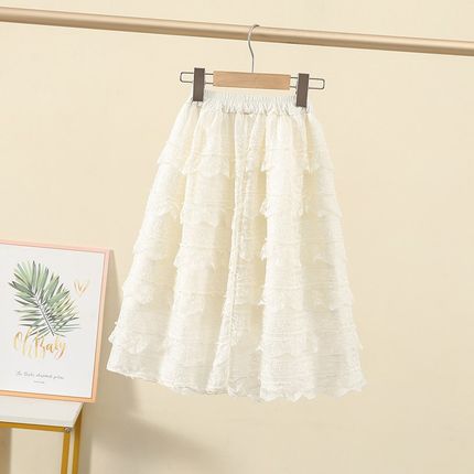 女童春秋白色半身裙2024新款儿童洋气蓬蓬裙大童夏季中长款蛋糕裙