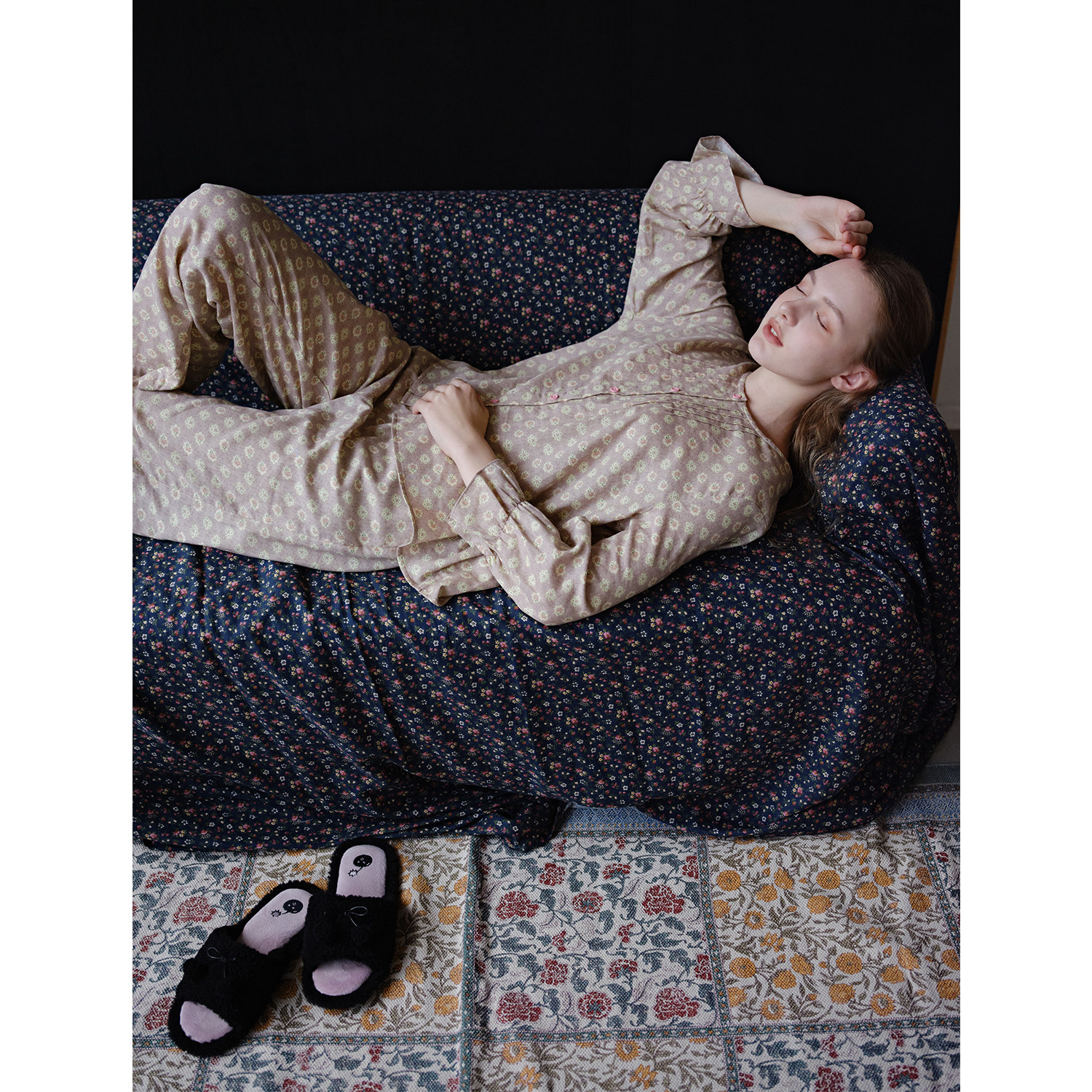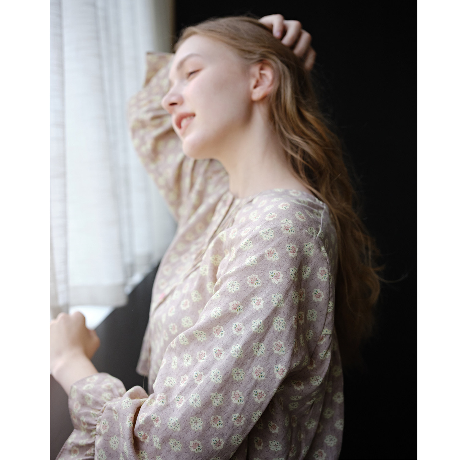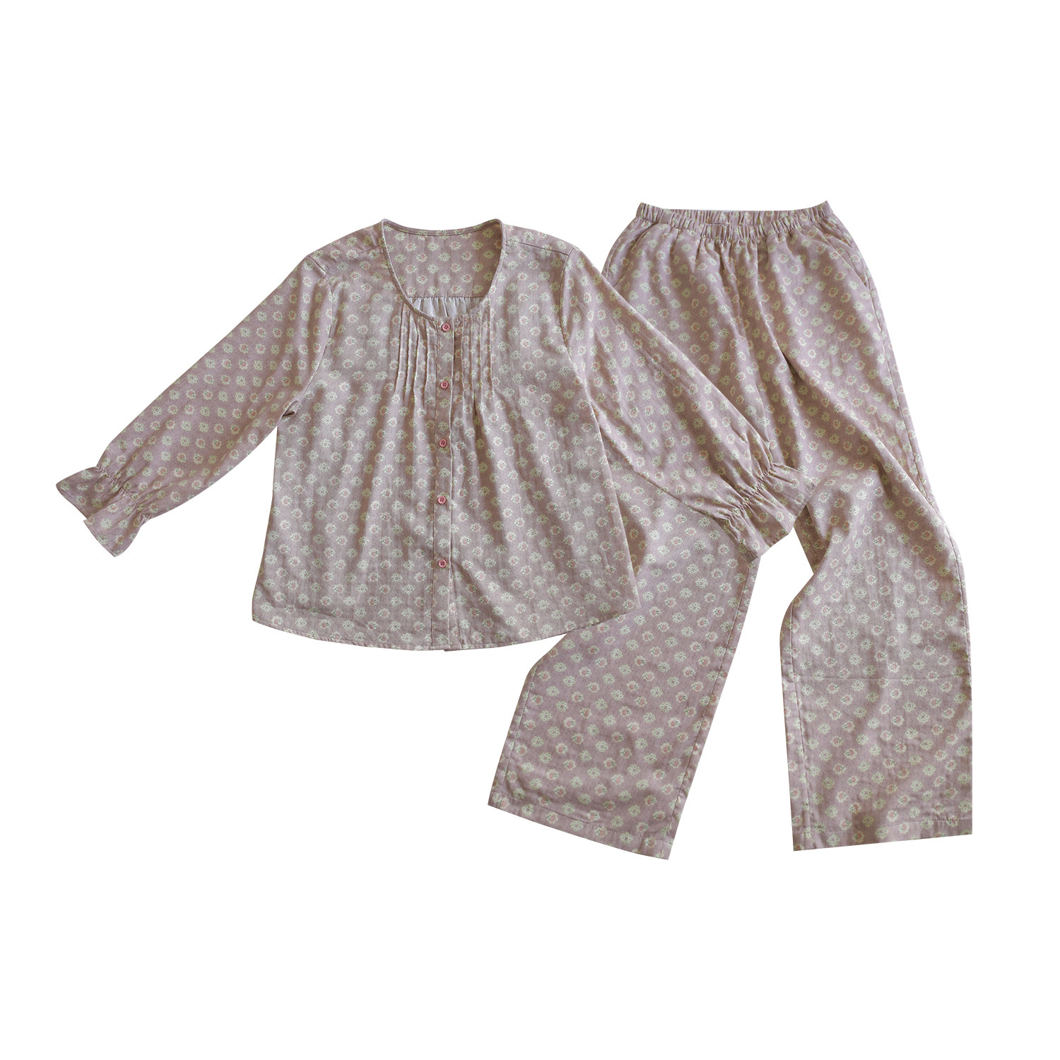 豆沙粉碎花·设计款圆领纯棉纱布春夏空调房长袖睡衣家居服套装新