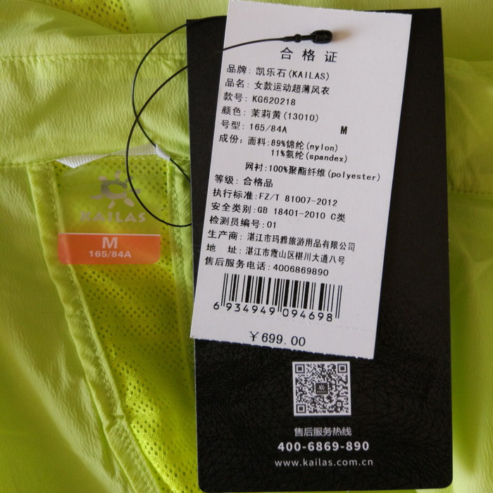 清仓KAILAS凯乐石男女户外运动超薄防晒超薄皮肤风衣外套KG610218